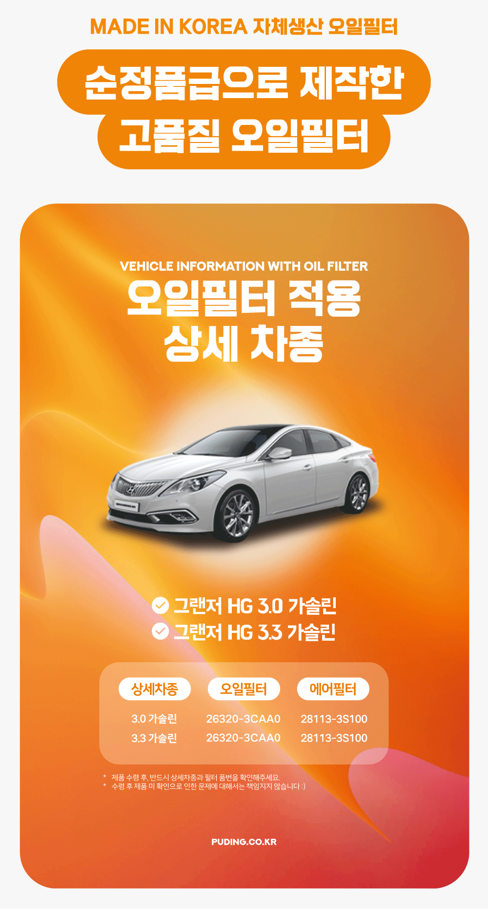 푸딩에서 고품질 오일필터를 저렴하게 교체해보세요! (MADE IN KOREA 자체생산)