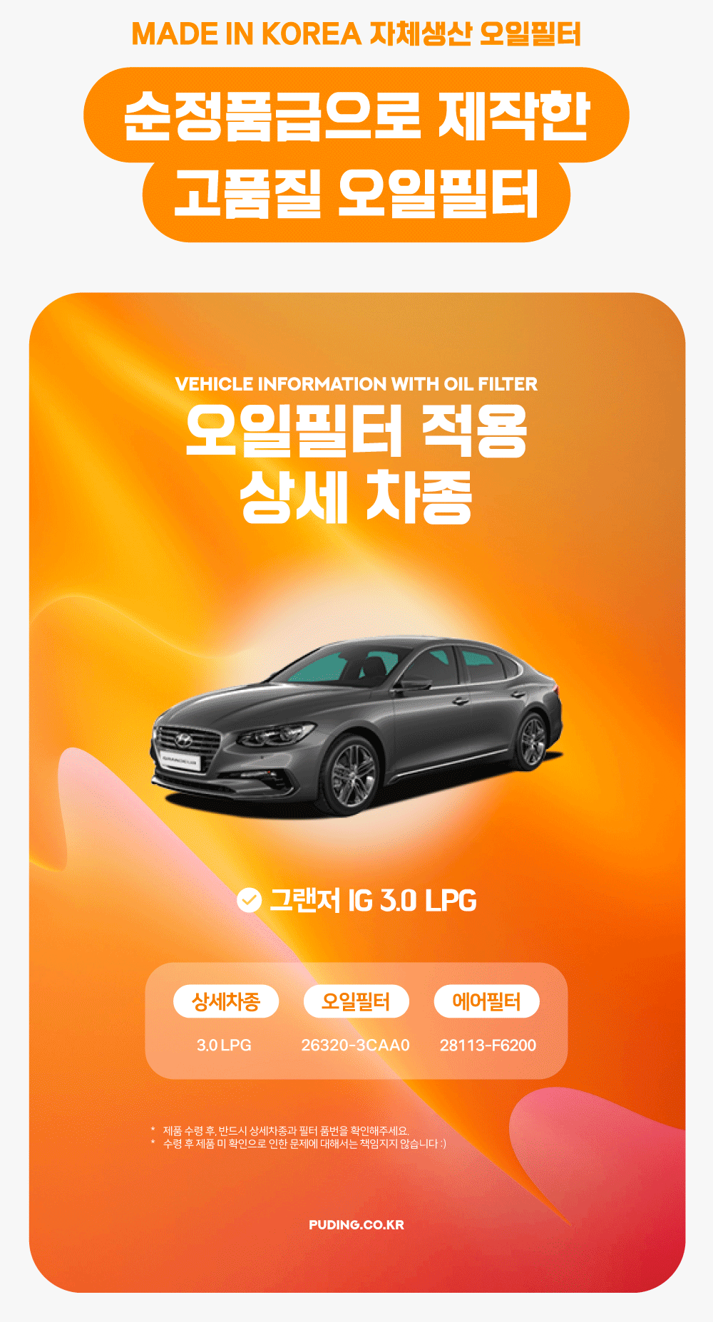 푸딩에서 고품질 오일필터를 저렴하게 교체해보세요! (MADE IN KOREA 자체생산)