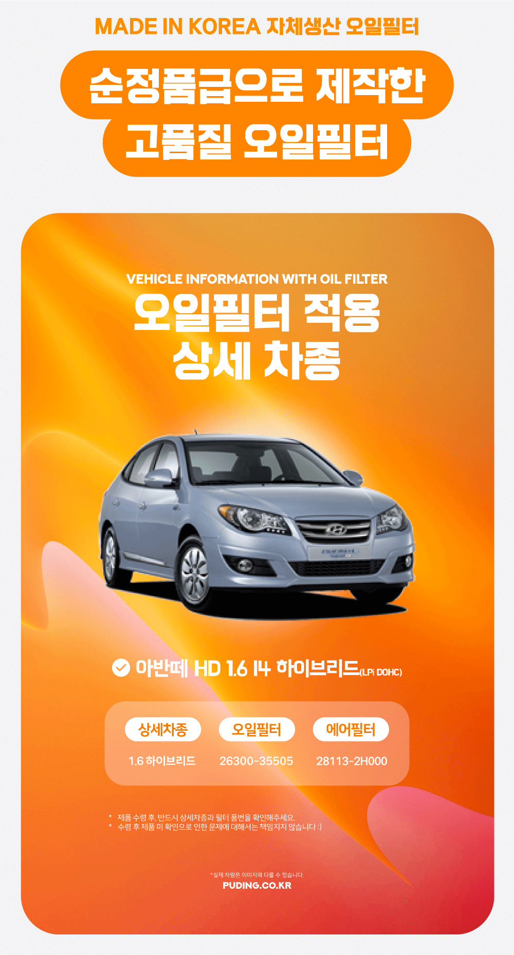 푸딩에서 고품질 오일필터를 저렴하게 교체해보세요! (MADE IN KOREA 자체생산)