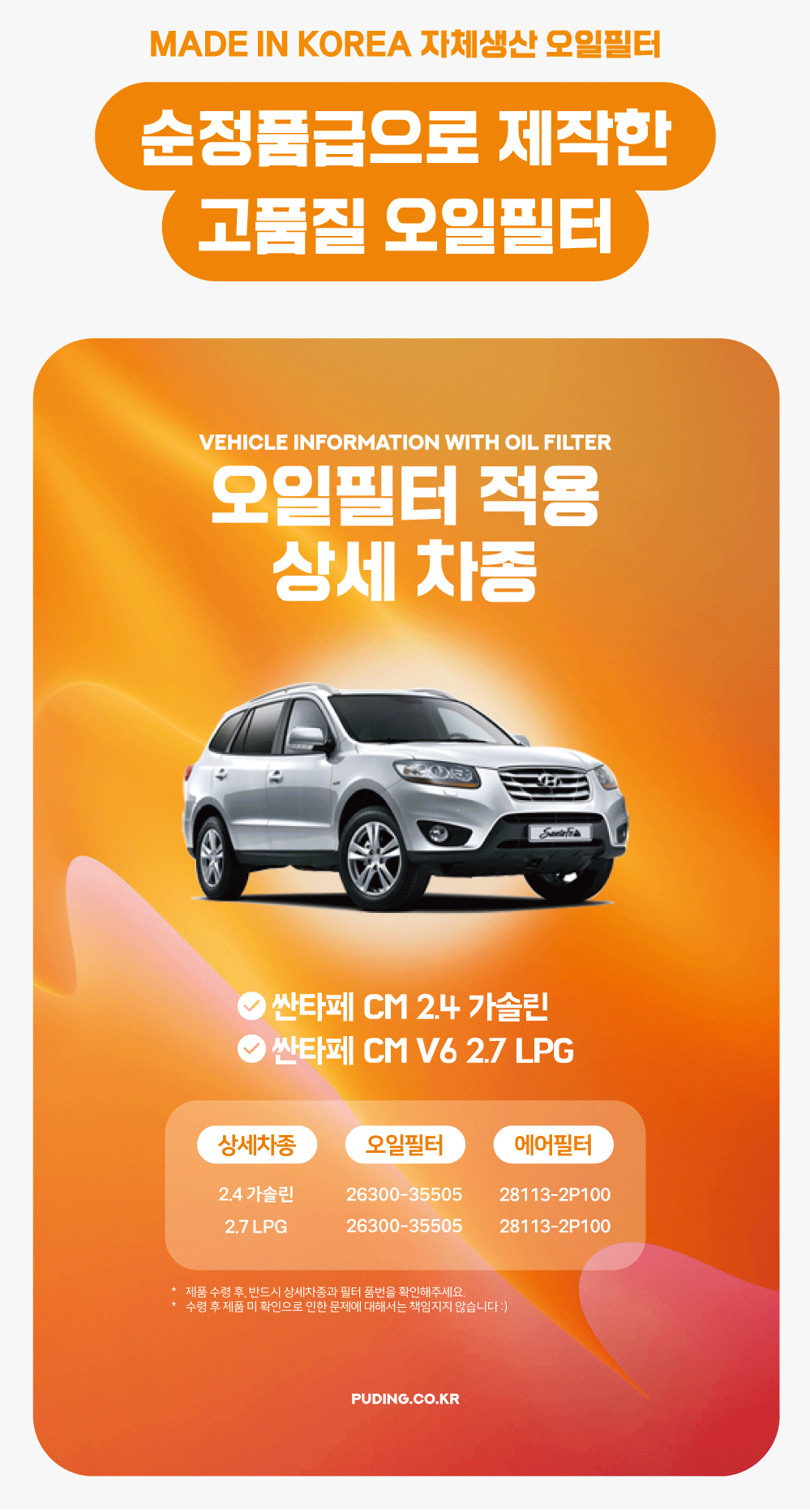 푸딩에서 고품질 오일필터를 저렴하게 교체해보세요! (MADE IN KOREA 자체생산)