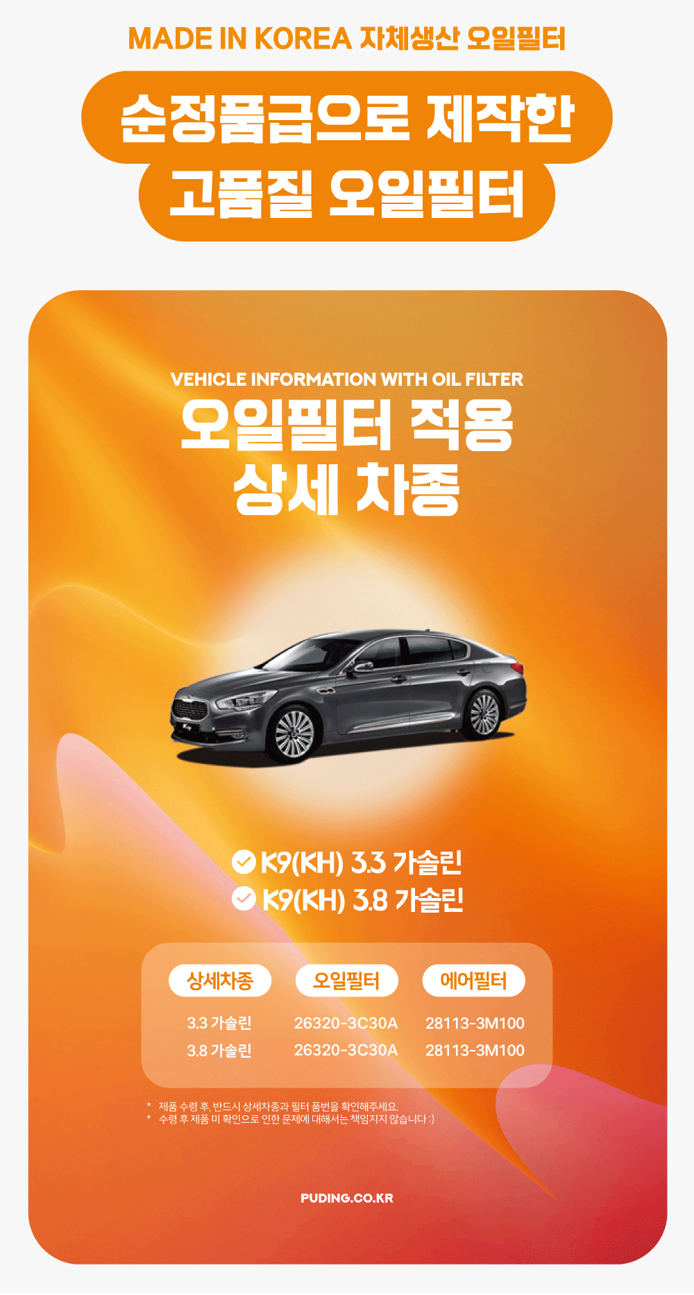 푸딩에서 고품질 오일필터를 저렴하게 교체해보세요! (MADE IN KOREA 자체생산)