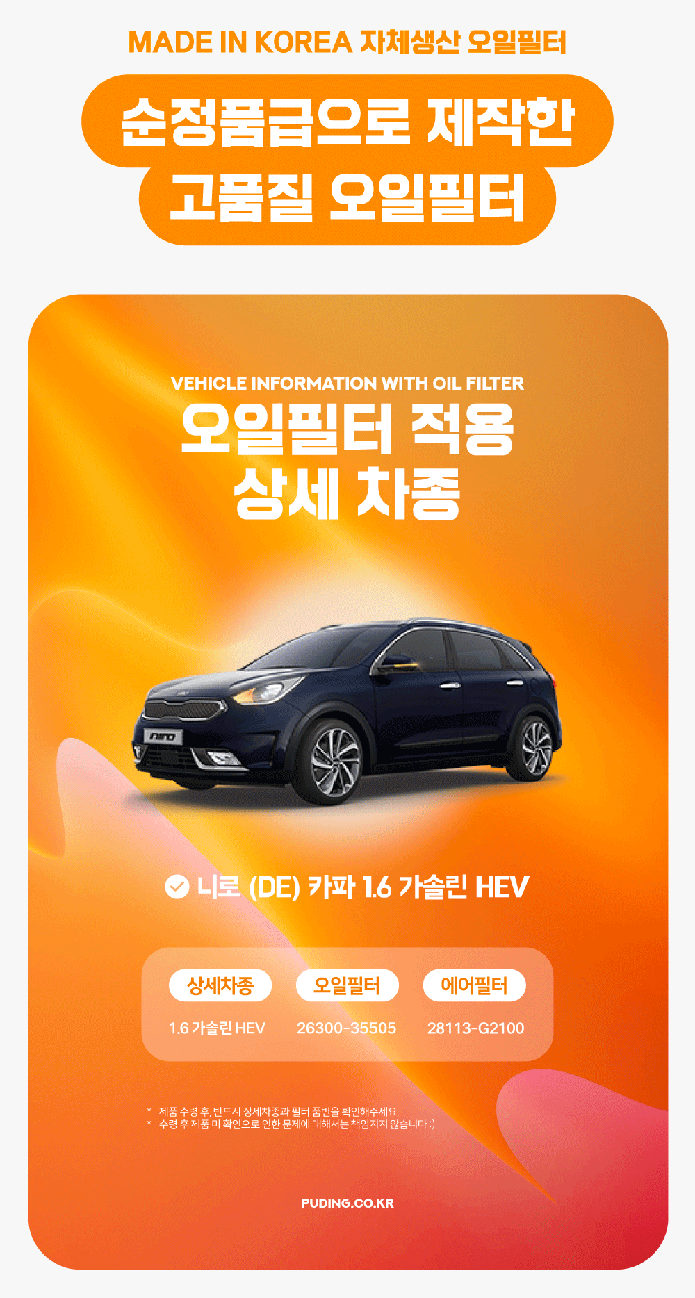 푸딩에서 고품질 오일필터를 저렴하게 교체해보세요! (MADE IN KOREA 자체생산)