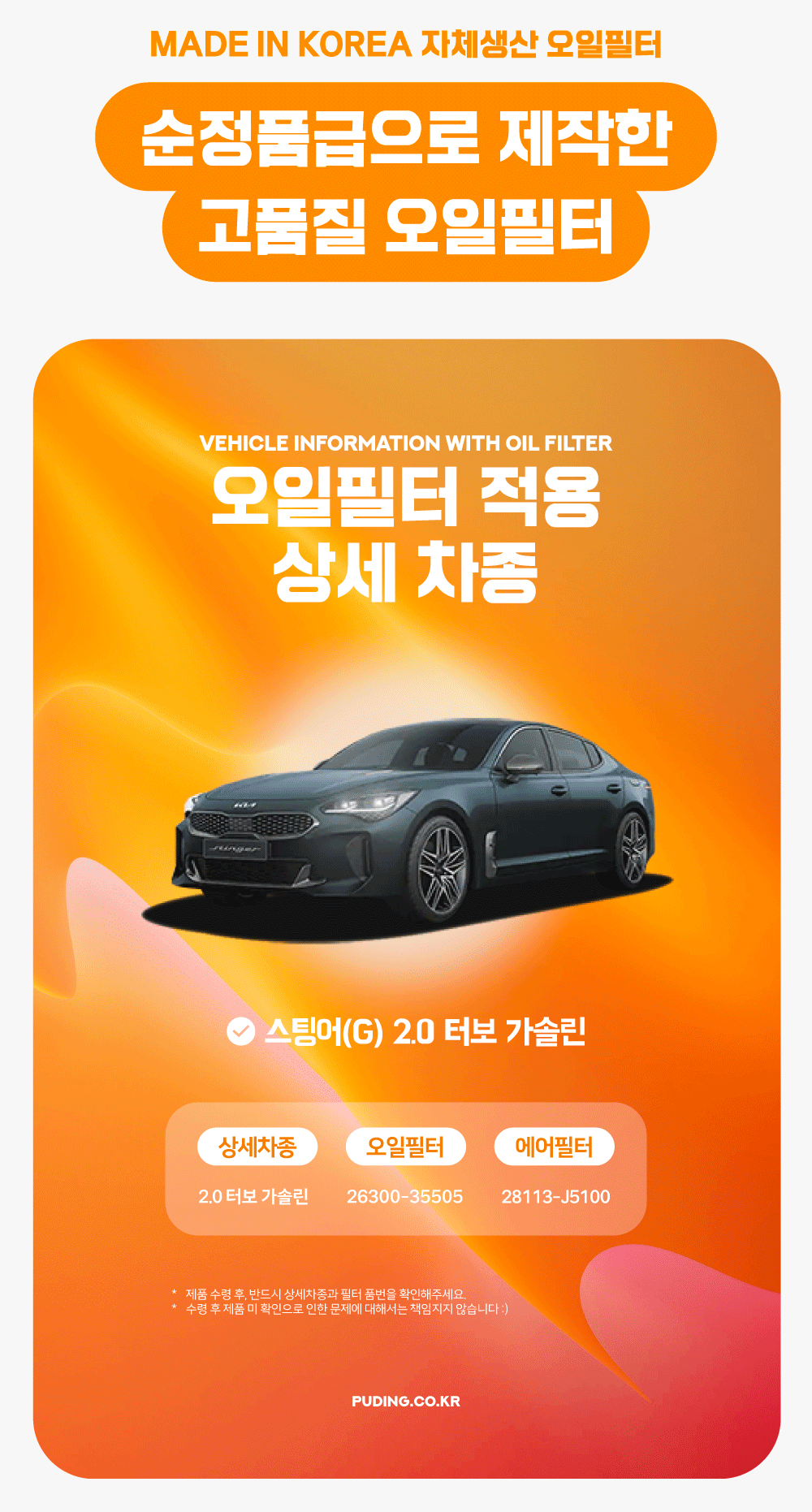 푸딩에서 고품질 오일필터를 저렴하게 교체해보세요! (MADE IN KOREA 자체생산)
