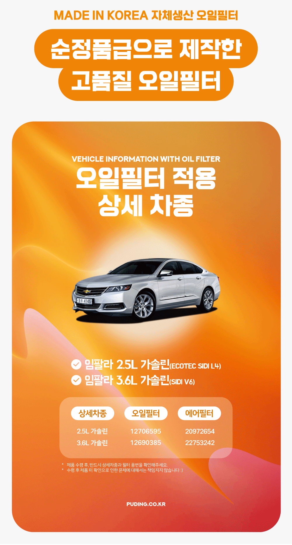 푸딩에서 고품질 오일필터를 저렴하게 교체해보세요! (MADE IN KOREA 자체생산)