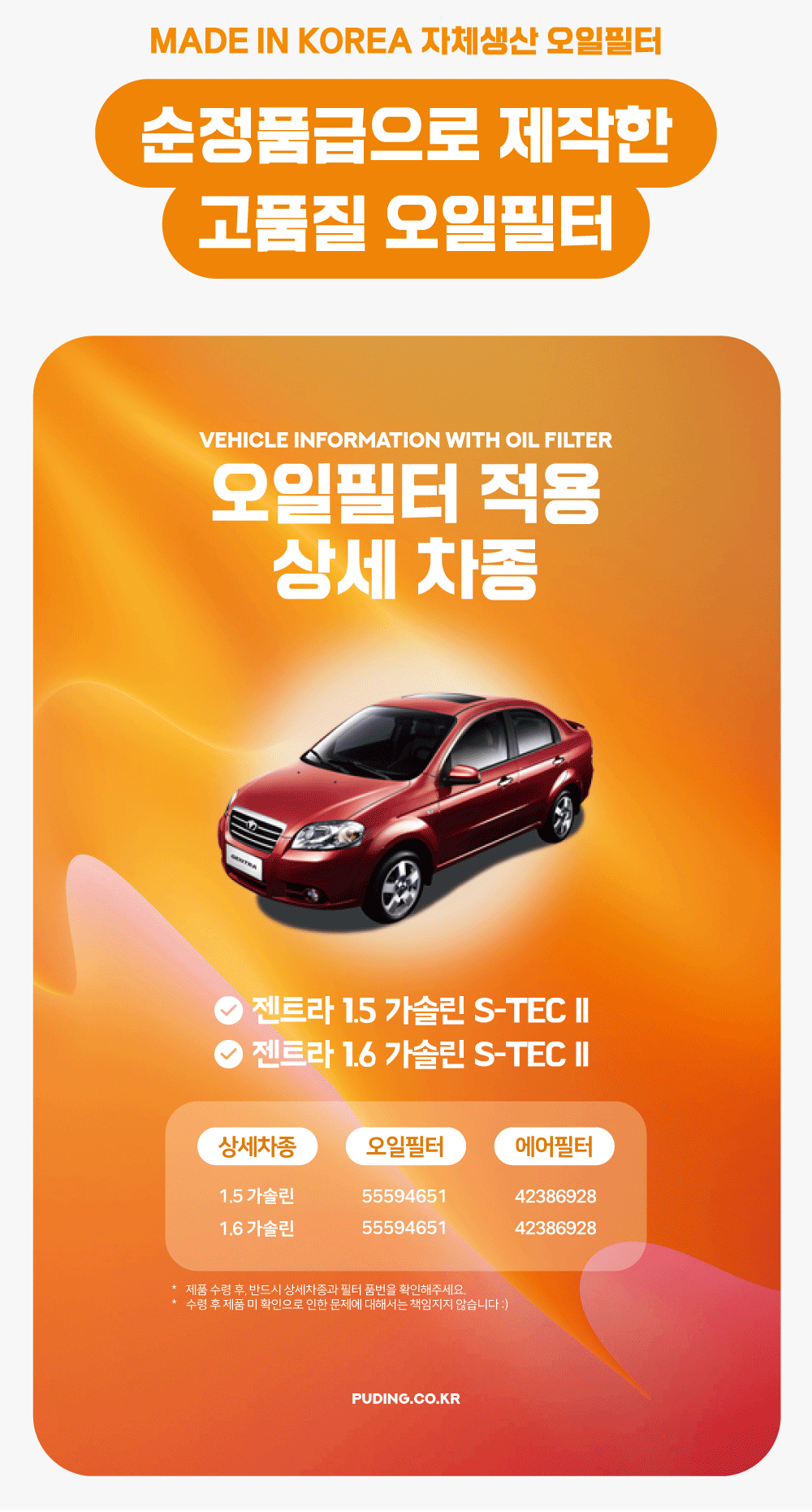 푸딩에서 고품질 오일필터를 저렴하게 교체해보세요! (MADE IN KOREA 자체생산)