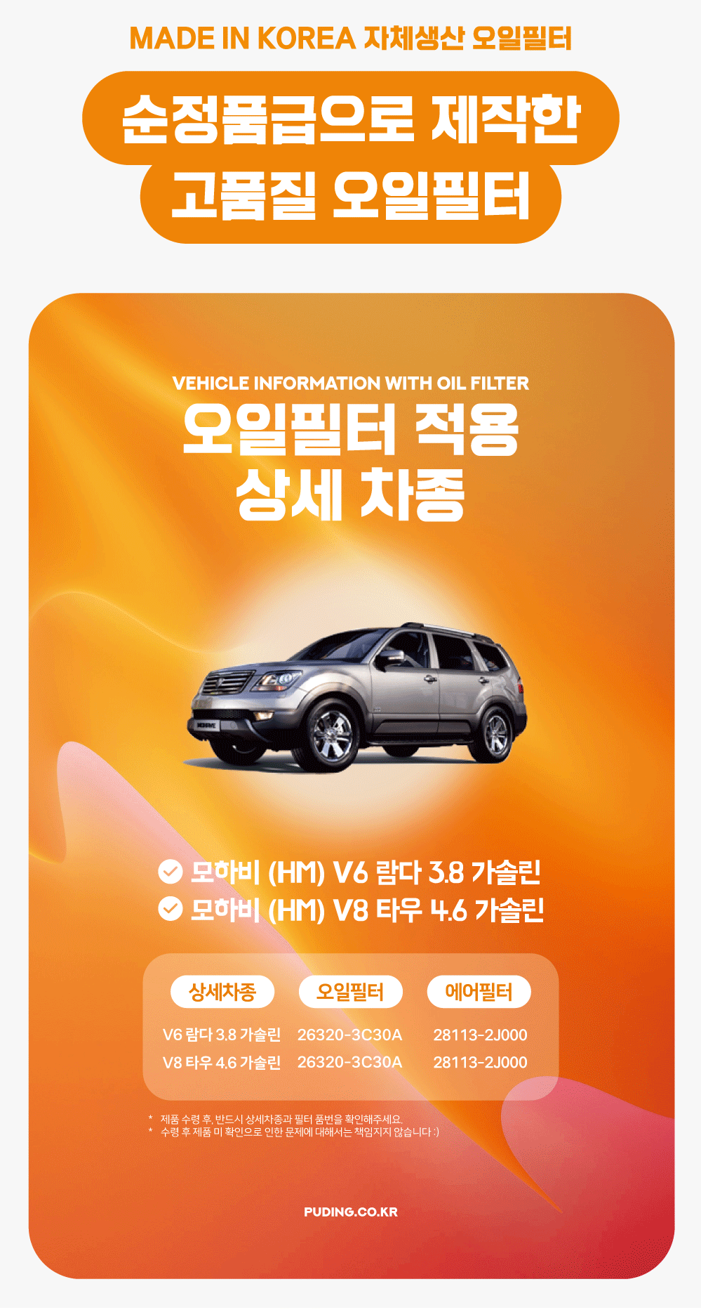 푸딩에서 고품질 오일필터를 저렴하게 교체해보세요! (MADE IN KOREA 자체생산)