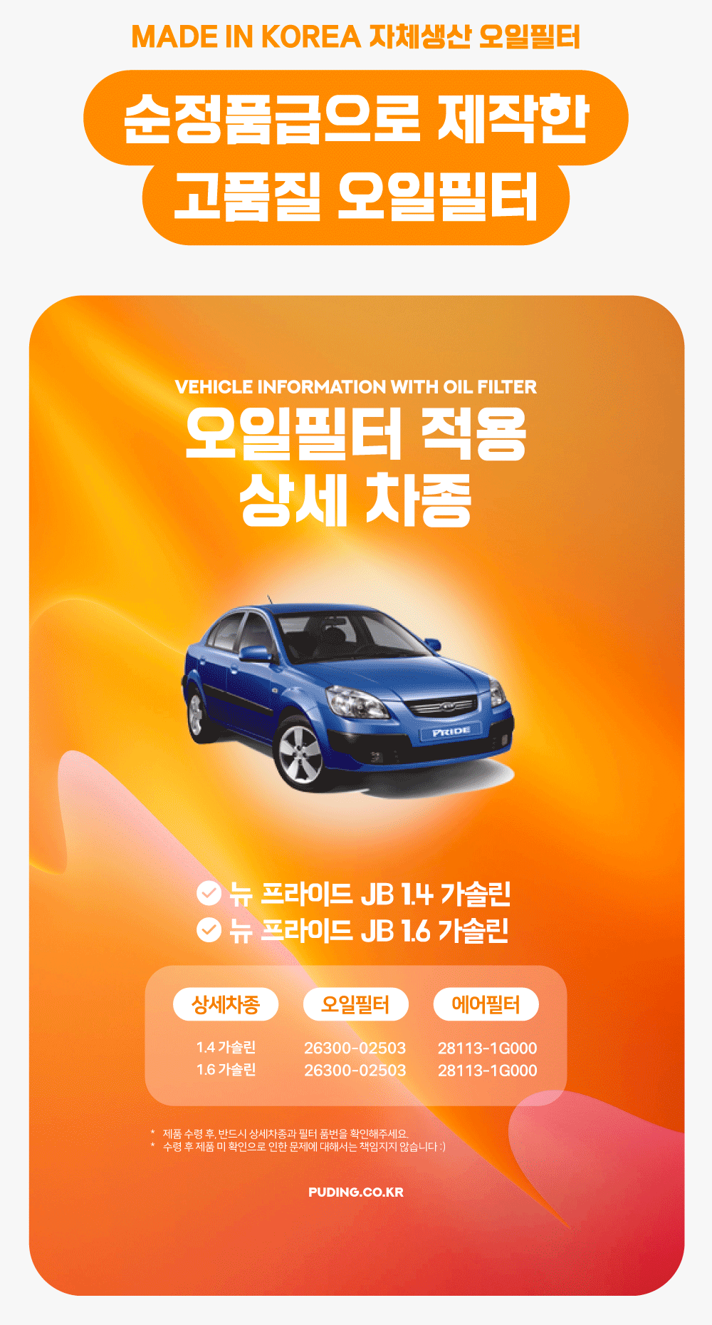 푸딩에서 고품질 오일필터를 저렴하게 교체해보세요! (MADE IN KOREA 자체생산)