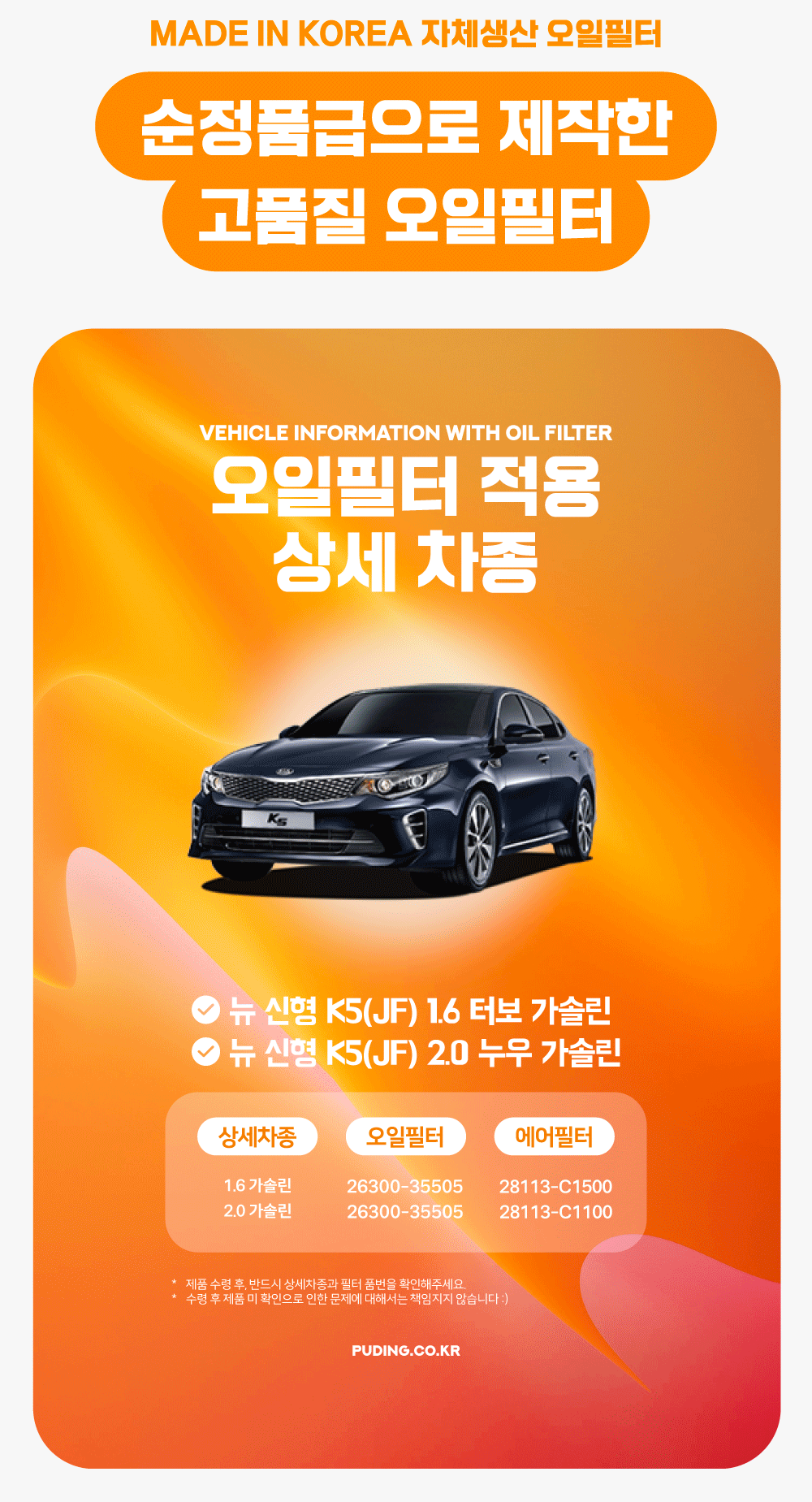 푸딩에서 고품질 오일필터를 저렴하게 교체해보세요! (MADE IN KOREA 자체생산)