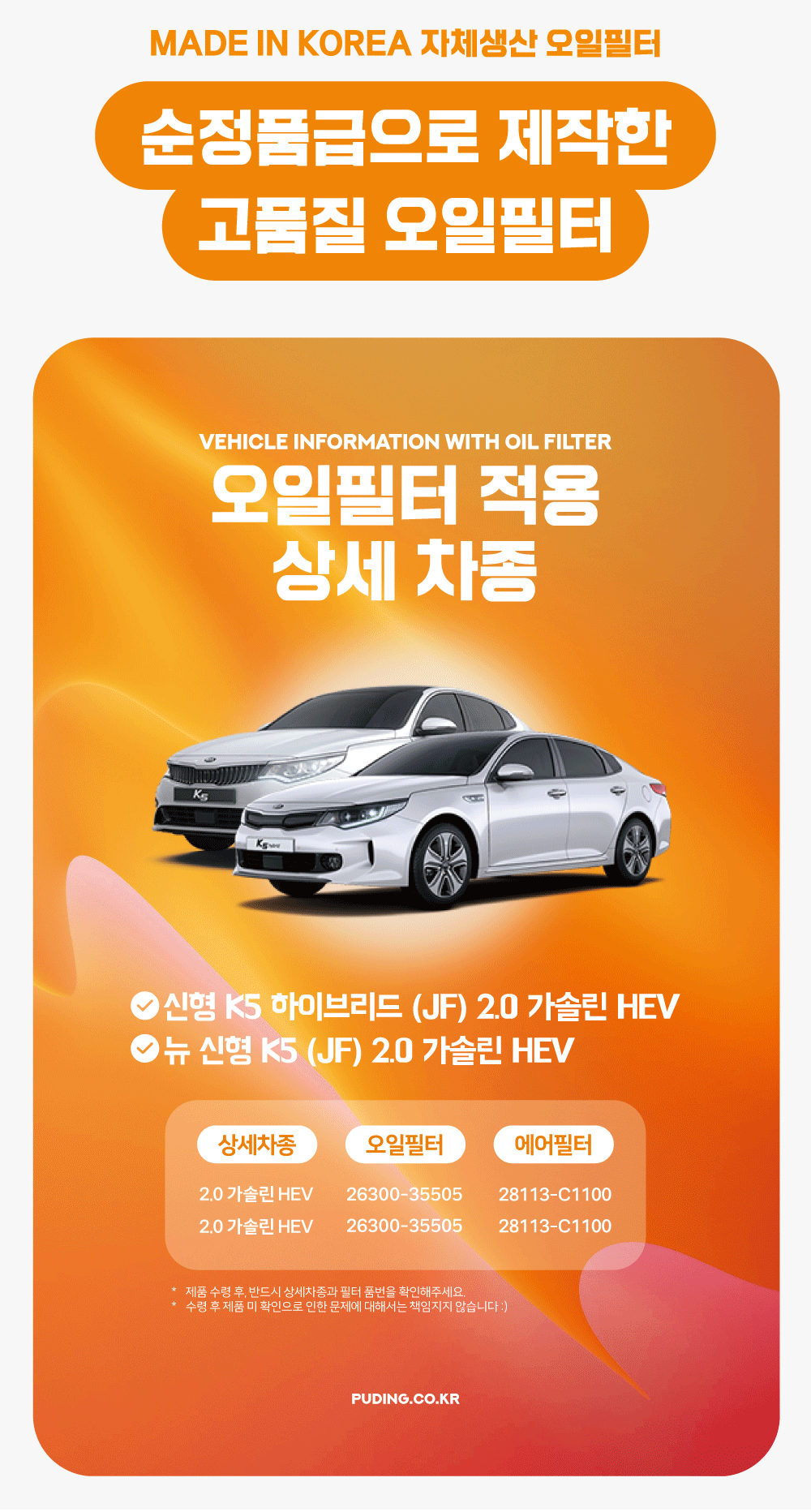 푸딩에서 고품질 오일필터를 저렴하게 교체해보세요! (MADE IN KOREA 자체생산)
