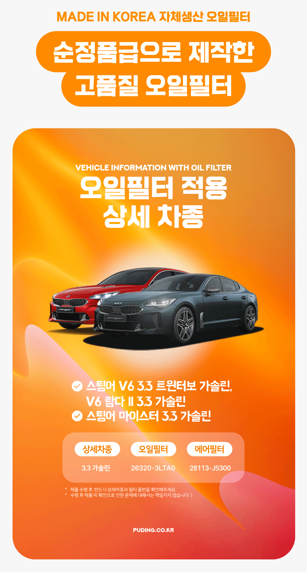 푸딩에서 고품질 오일필터를 저렴하게 교체해보세요! (MADE IN KOREA 자체생산)