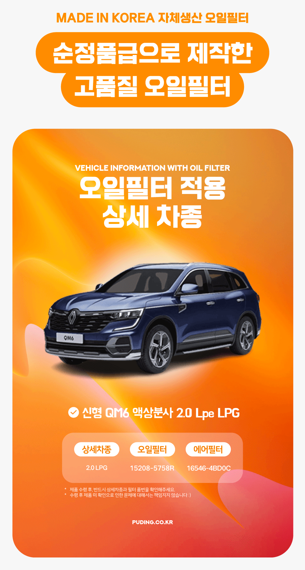 푸딩에서 고품질 오일필터를 저렴하게 교체해보세요! (MADE IN KOREA 자체생산)