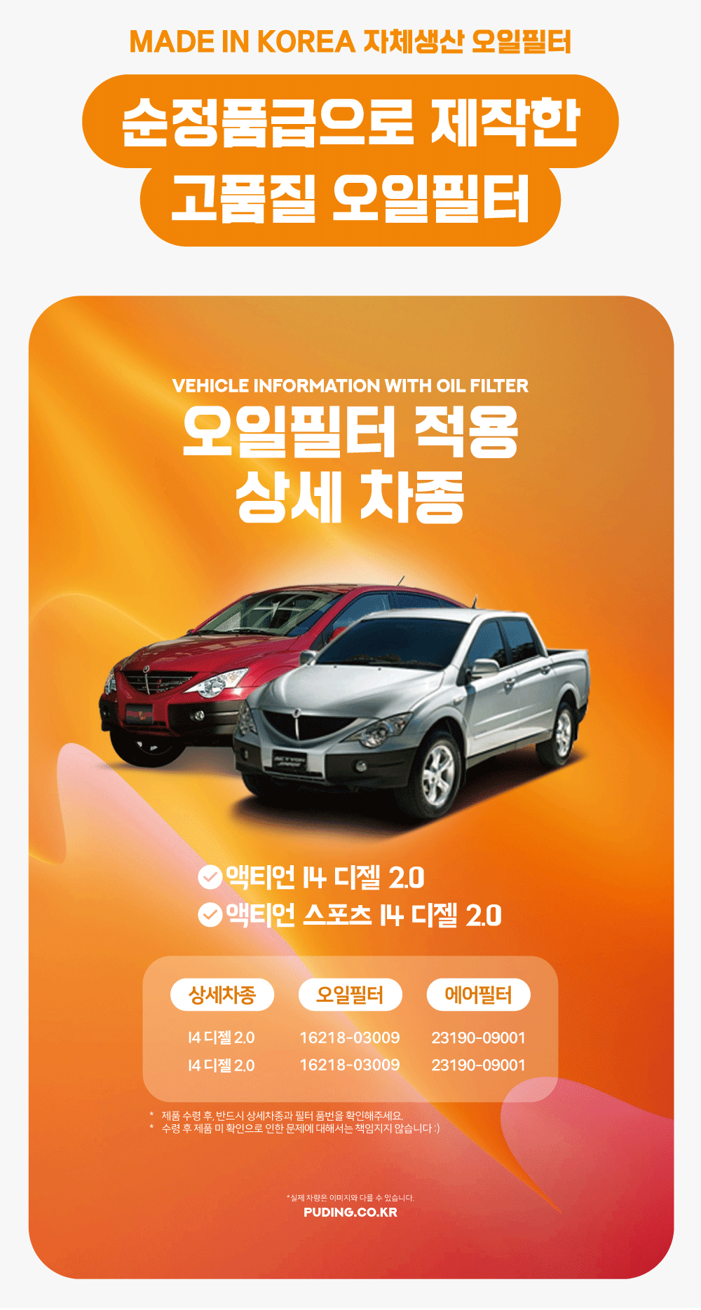 푸딩에서 고품질 오일필터를 저렴하게 교체해보세요! (MADE IN KOREA 자체생산)