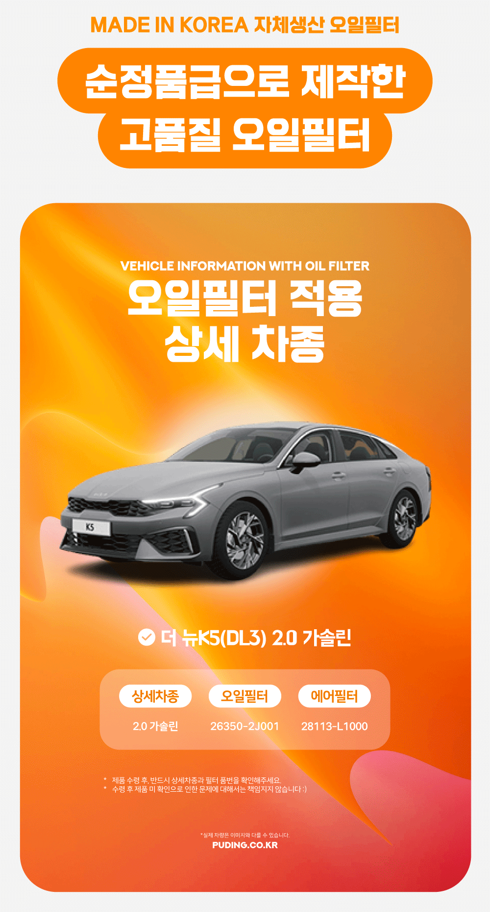 푸딩에서 고품질 오일필터를 저렴하게 교체해보세요! (MADE IN KOREA 자체생산)
