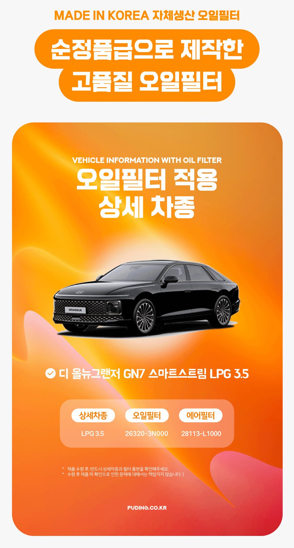푸딩에서 고품질 오일필터를 저렴하게 교체해보세요! (MADE IN KOREA 자체생산)