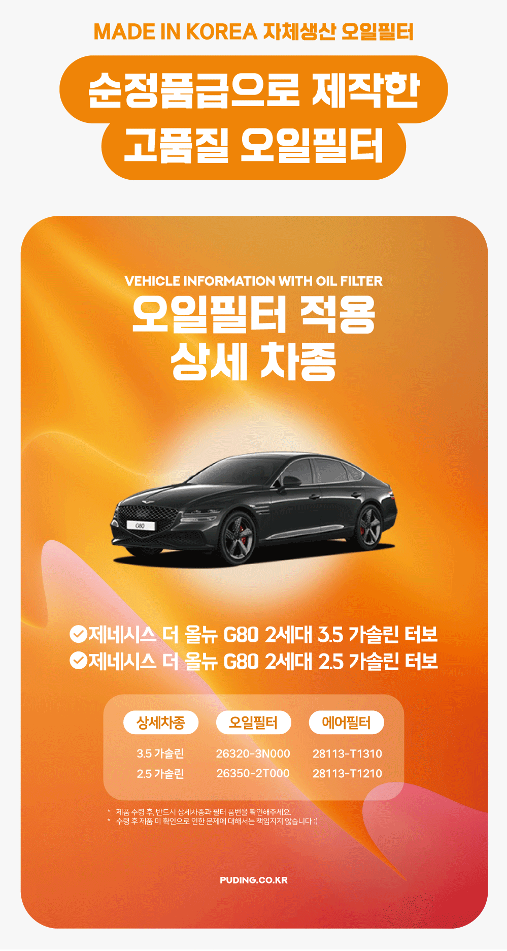 푸딩에서 고품질 오일필터를 저렴하게 교체해보세요! (MADE IN KOREA 자체생산)