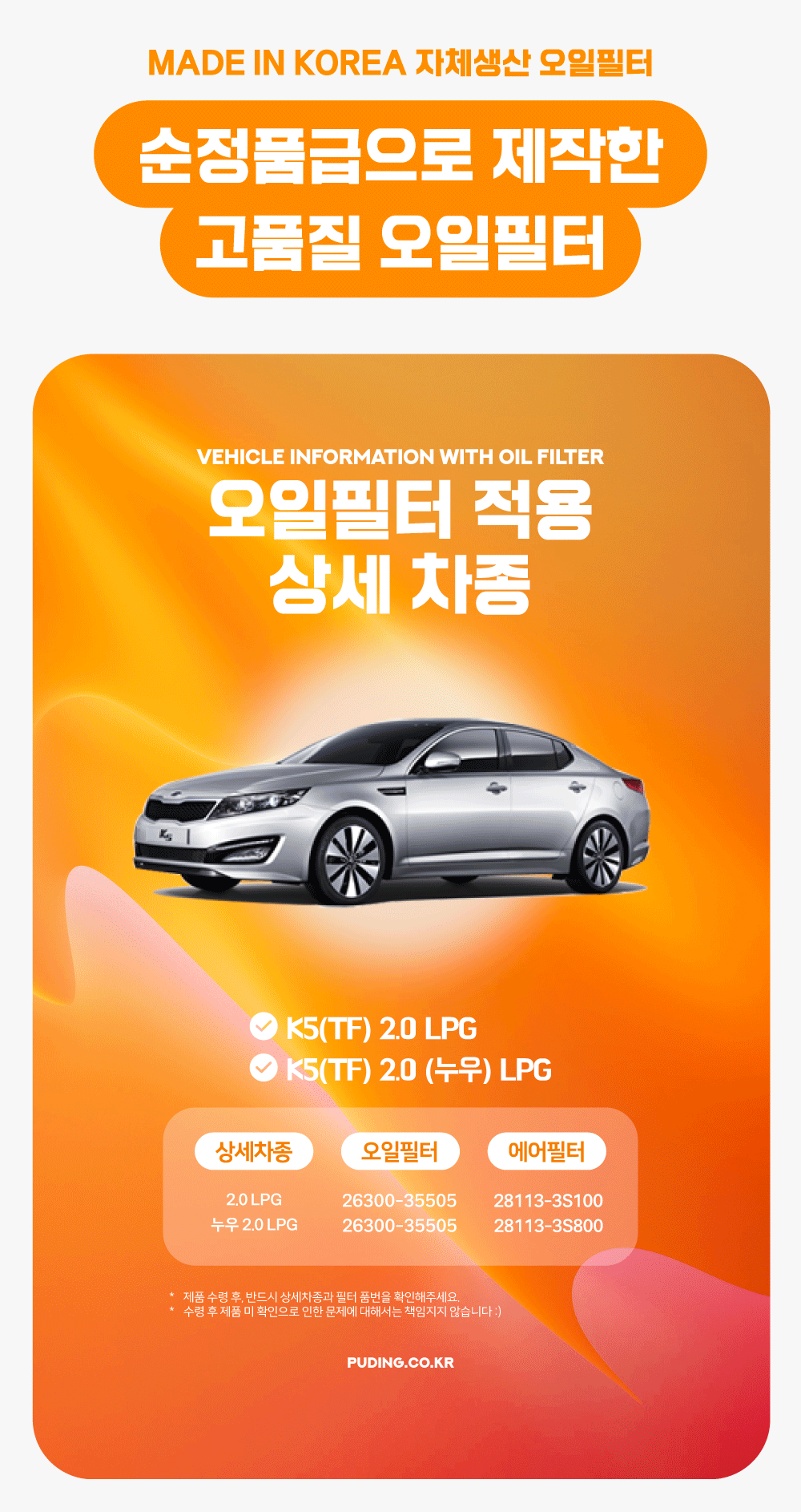 푸딩에서 고품질 오일필터를 저렴하게 교체해보세요! (MADE IN KOREA 자체생산)