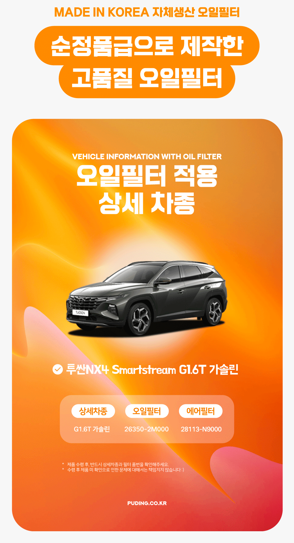 푸딩에서 고품질 오일필터를 저렴하게 교체해보세요! (MADE IN KOREA 자체생산)