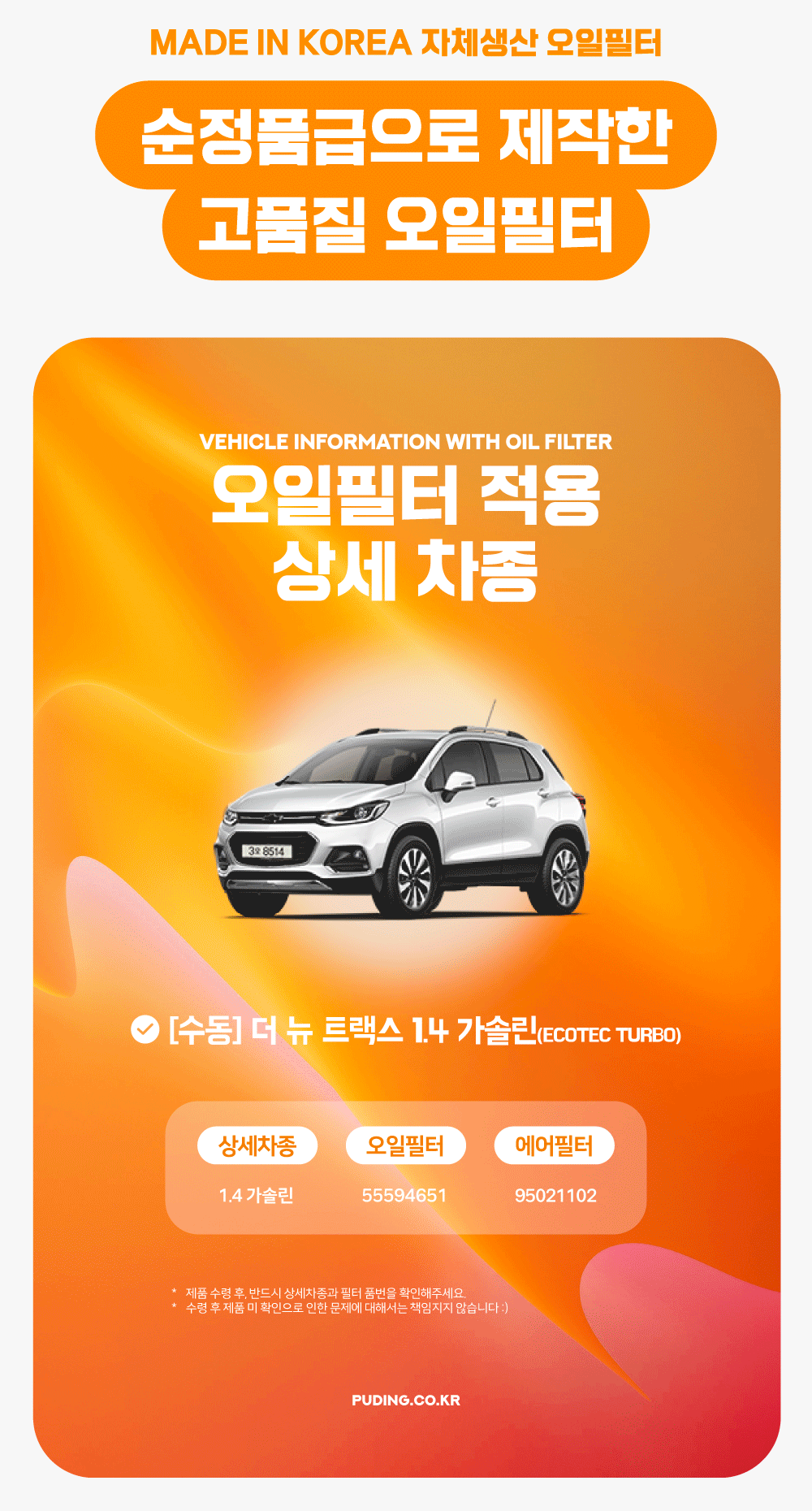 푸딩에서 고품질 오일필터를 저렴하게 교체해보세요! (MADE IN KOREA 자체생산)