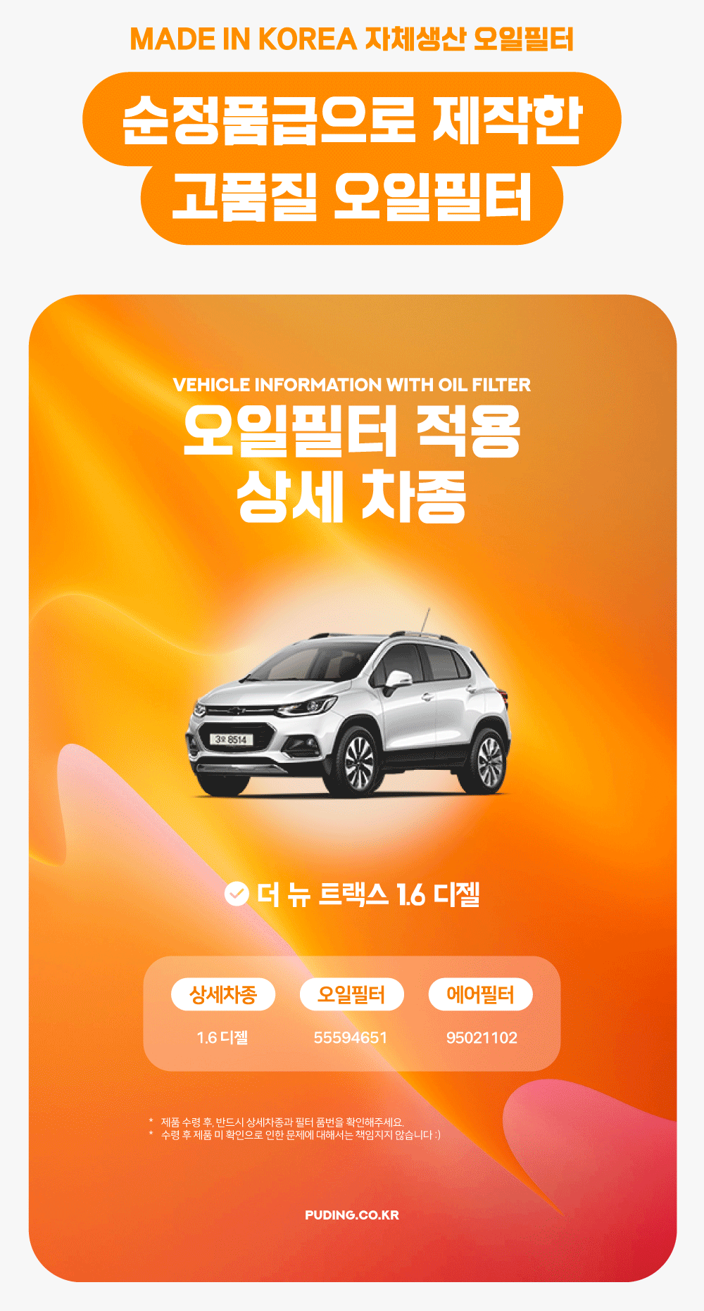 푸딩에서 고품질 오일필터를 저렴하게 교체해보세요! (MADE IN KOREA 자체생산)