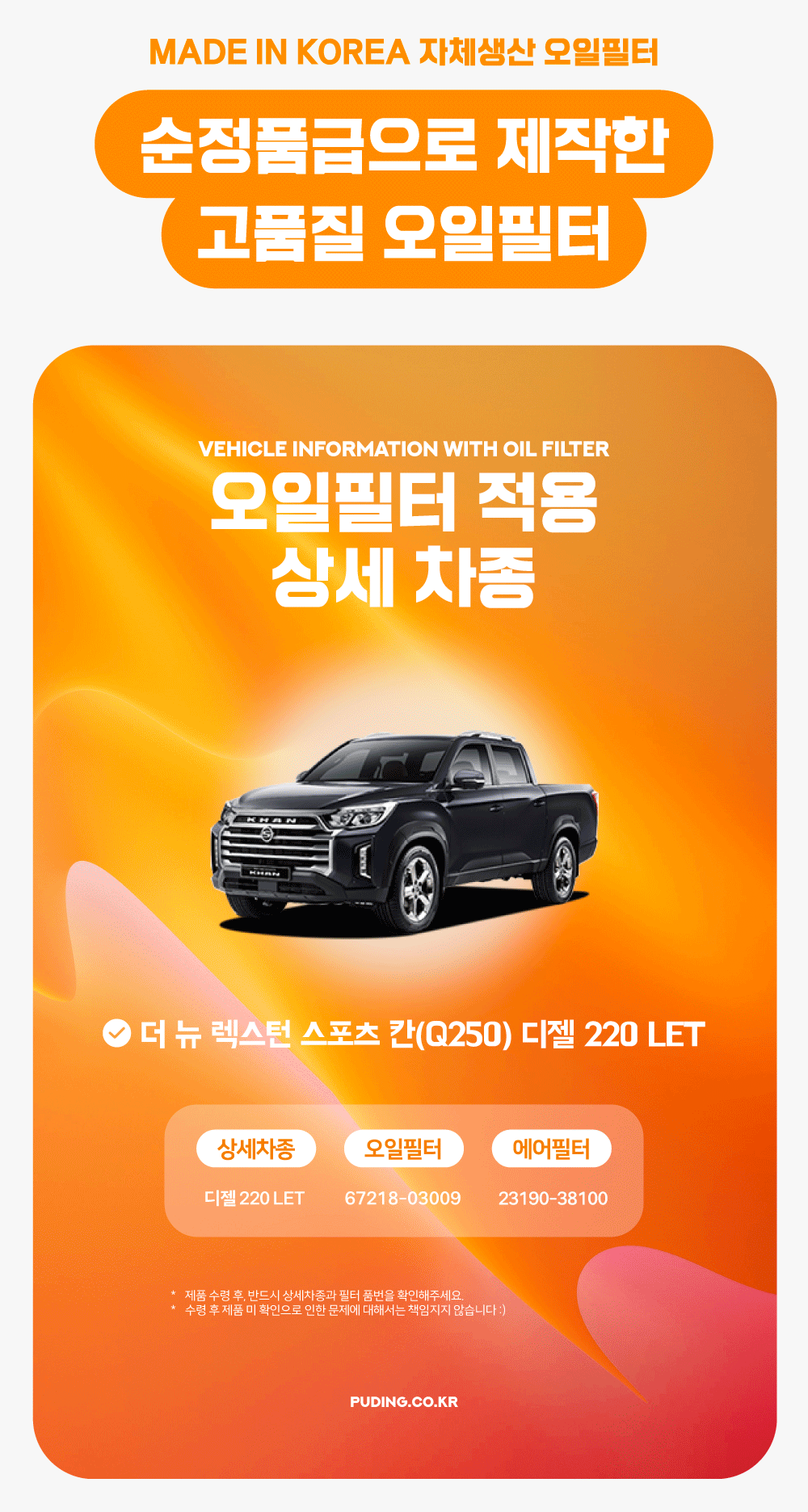 푸딩에서 고품질 오일필터를 저렴하게 교체해보세요! (MADE IN KOREA 자체생산)