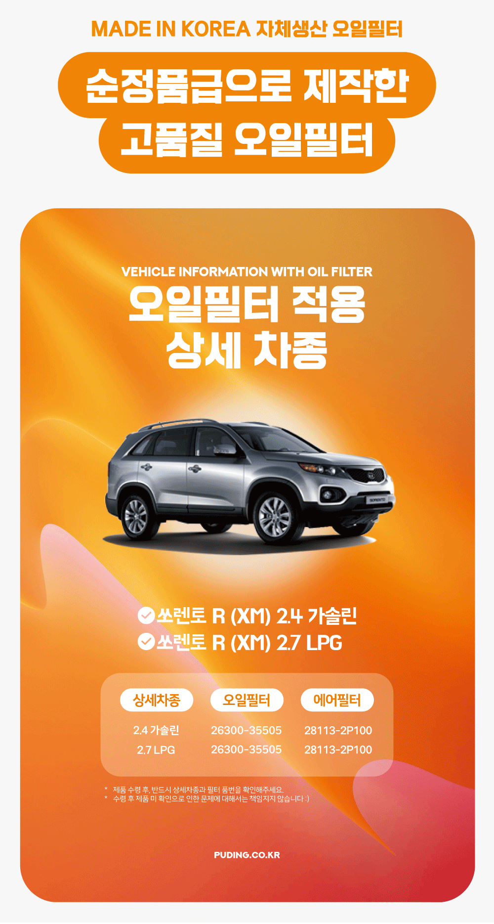 푸딩에서 고품질 오일필터를 저렴하게 교체해보세요! (MADE IN KOREA 자체생산)