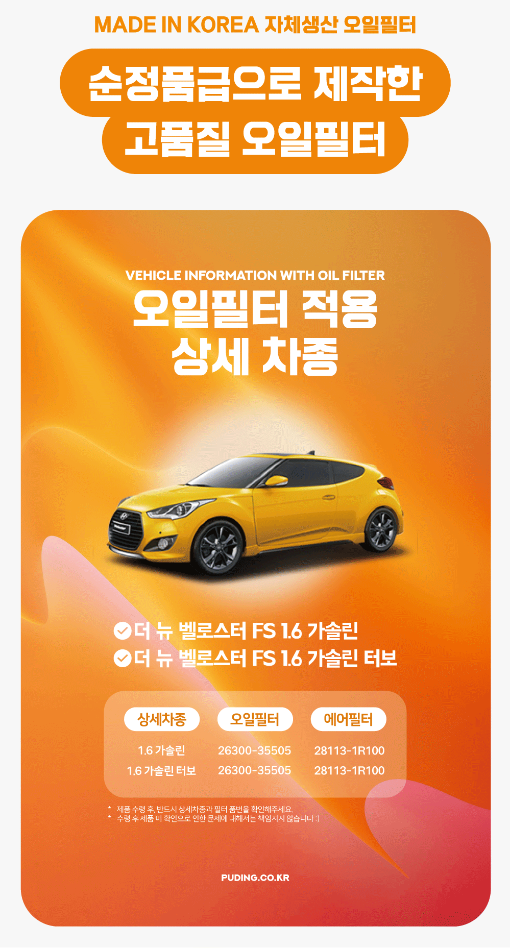 푸딩에서 고품질 오일필터를 저렴하게 교체해보세요! (MADE IN KOREA 자체생산)