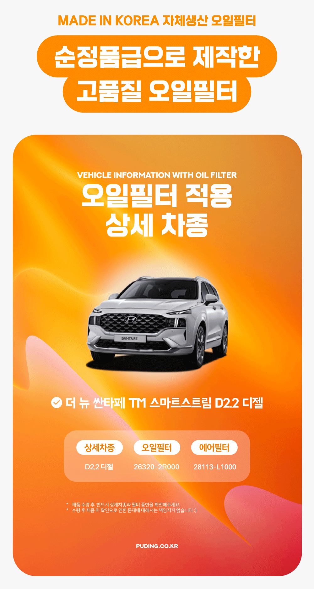 푸딩에서 고품질 오일필터를 저렴하게 교체해보세요! (MADE IN KOREA 자체생산)