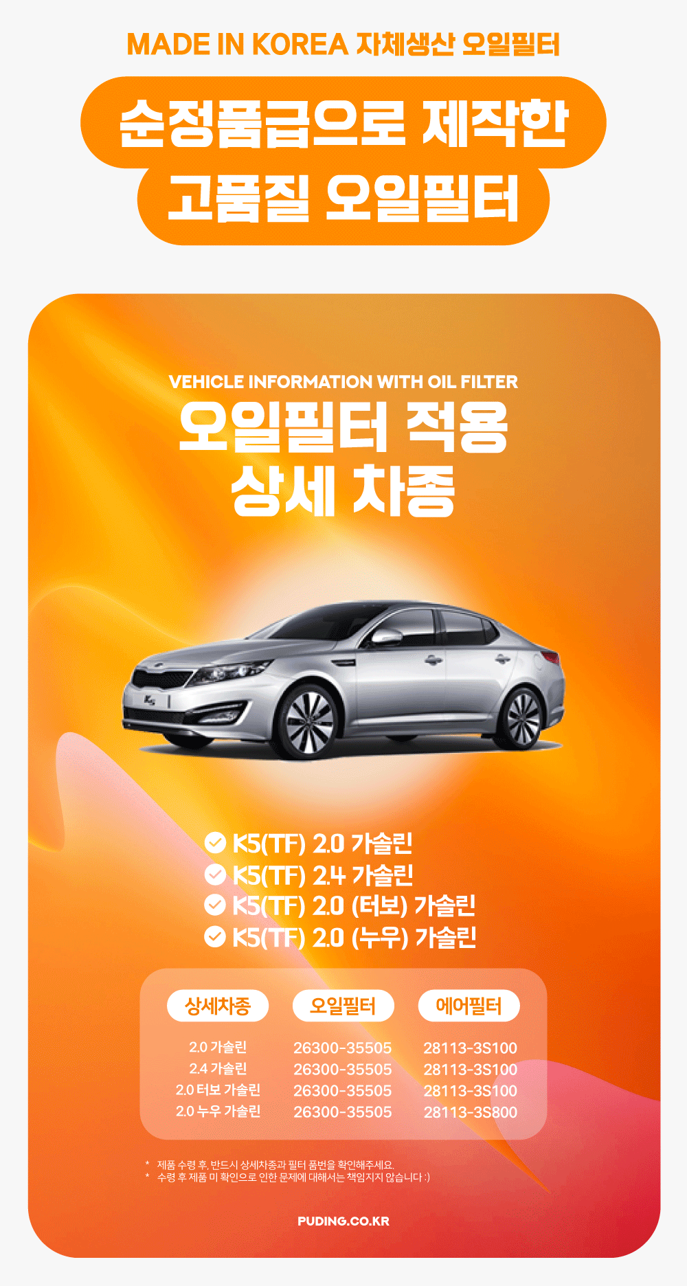 엔진형식(연형)선택하세요.K5 (TF)(가솔린) 세타Ⅱ 2.4 GDI (2010-2013)