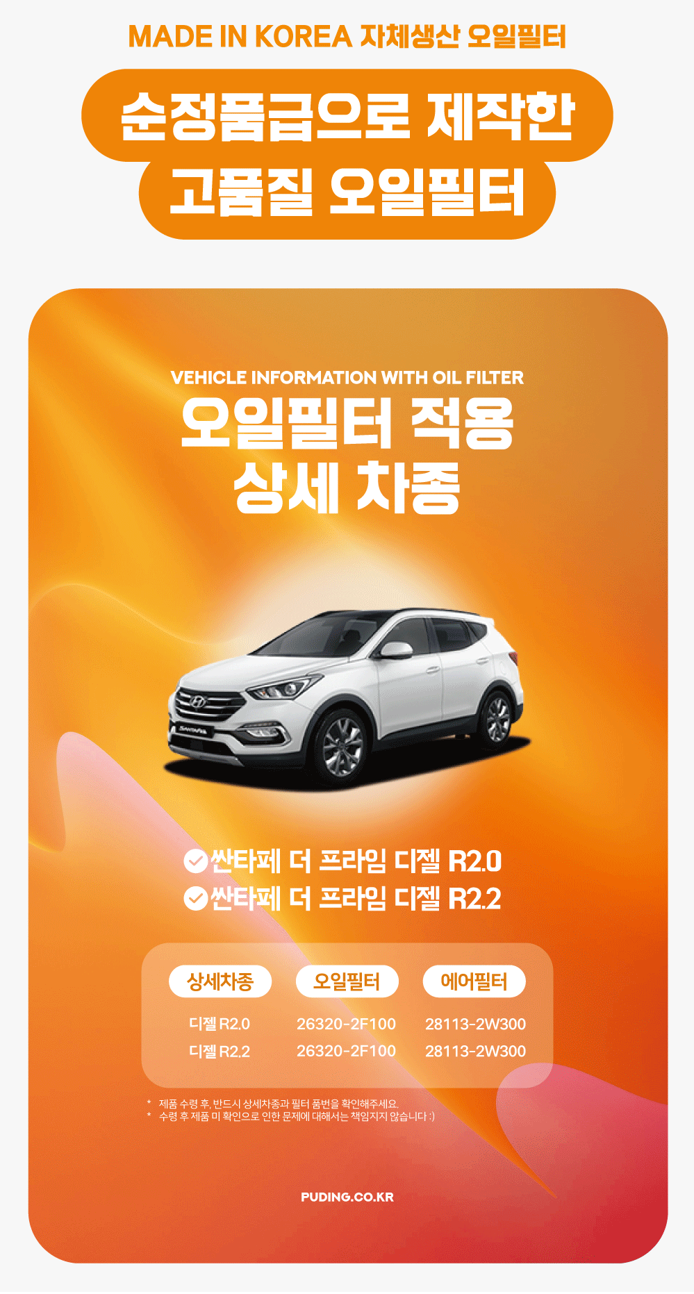 푸딩에서 고품질 오일필터를 저렴하게 교체해보세요! (MADE IN KOREA 자체생산)