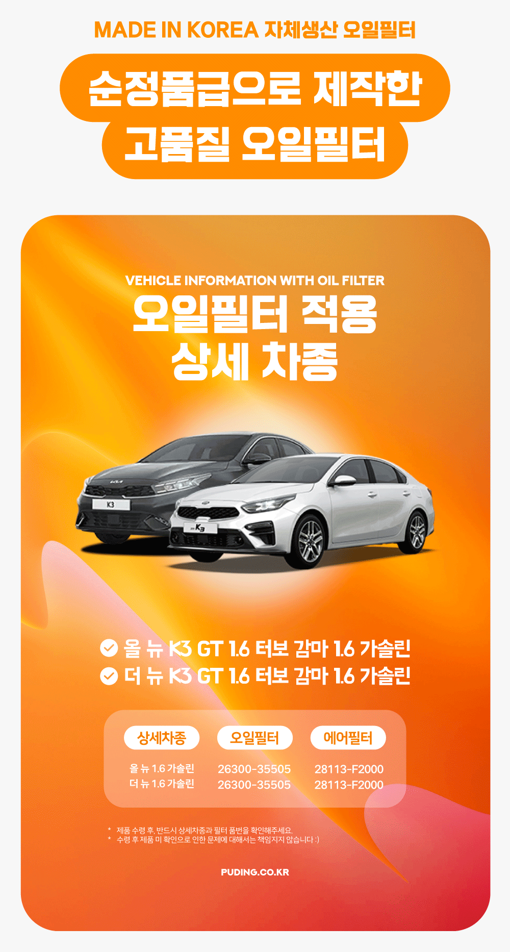 푸딩에서 고품질 오일필터를 저렴하게 교체해보세요! (MADE IN KOREA 자체생산)