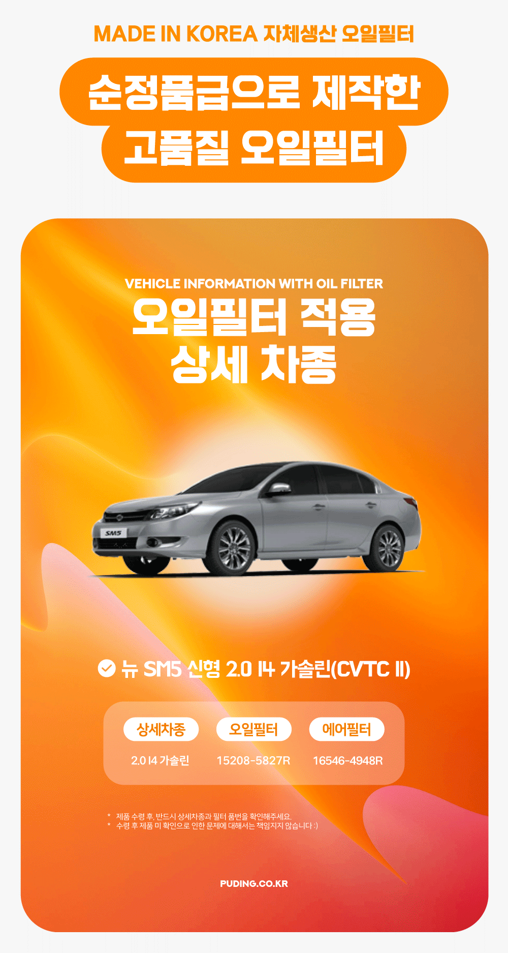 푸딩에서 고품질 오일필터를 저렴하게 교체해보세요! (MADE IN KOREA 자체생산)