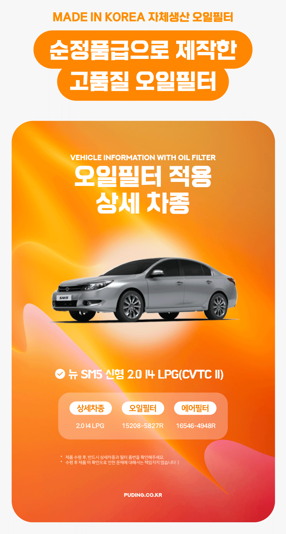 푸딩에서 고품질 오일필터를 저렴하게 교체해보세요! (MADE IN KOREA 자체생산)