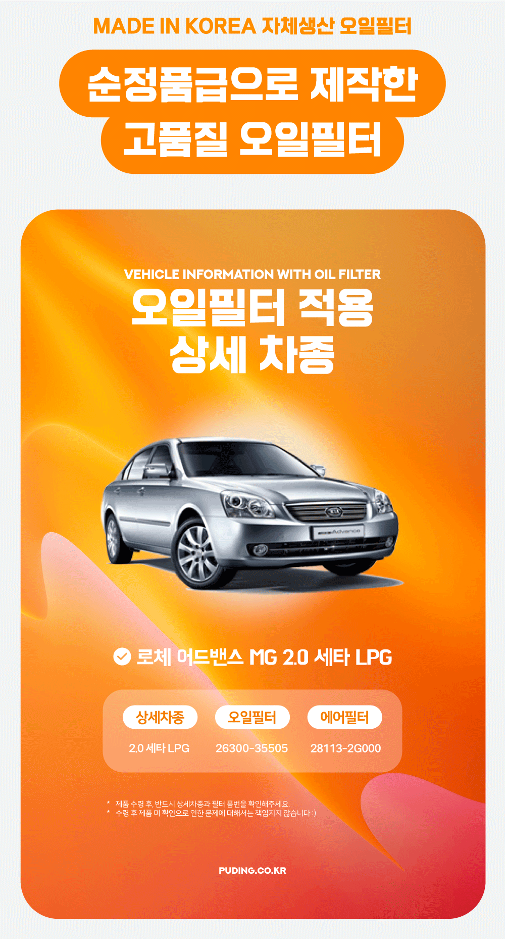 푸딩에서 고품질 오일필터를 저렴하게 교체해보세요! (MADE IN KOREA 자체생산)