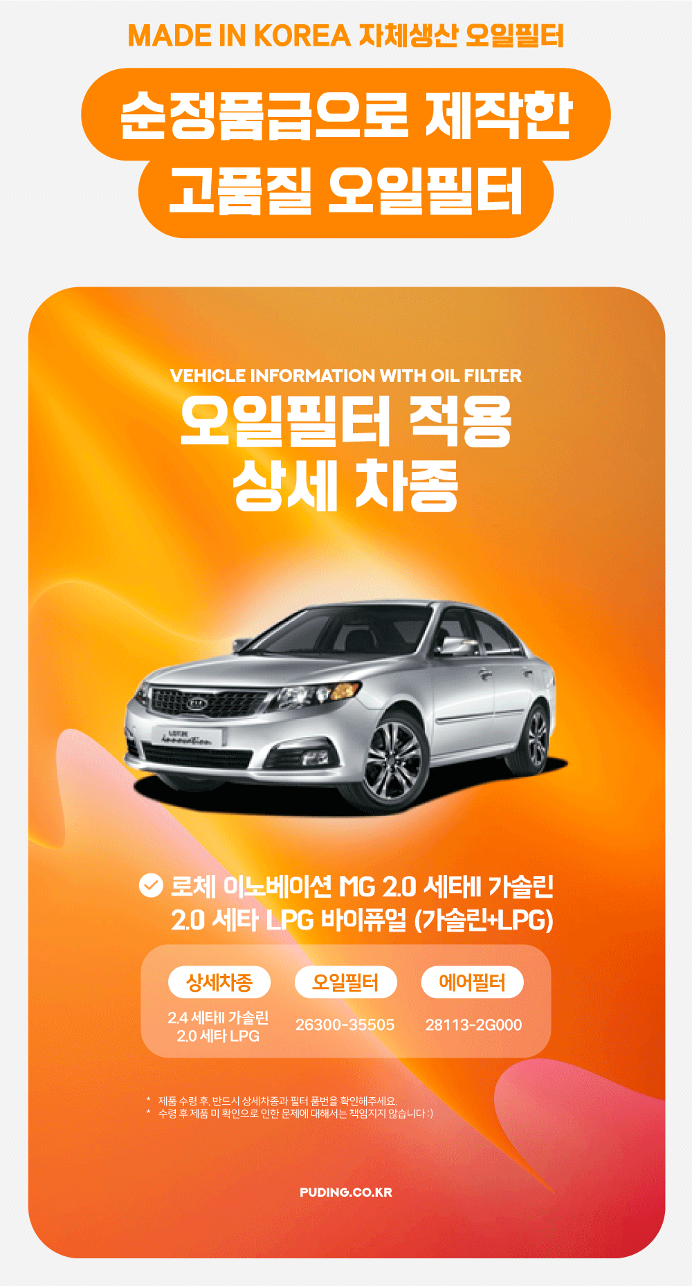 푸딩에서 고품질 오일필터를 저렴하게 교체해보세요! (MADE IN KOREA 자체생산)