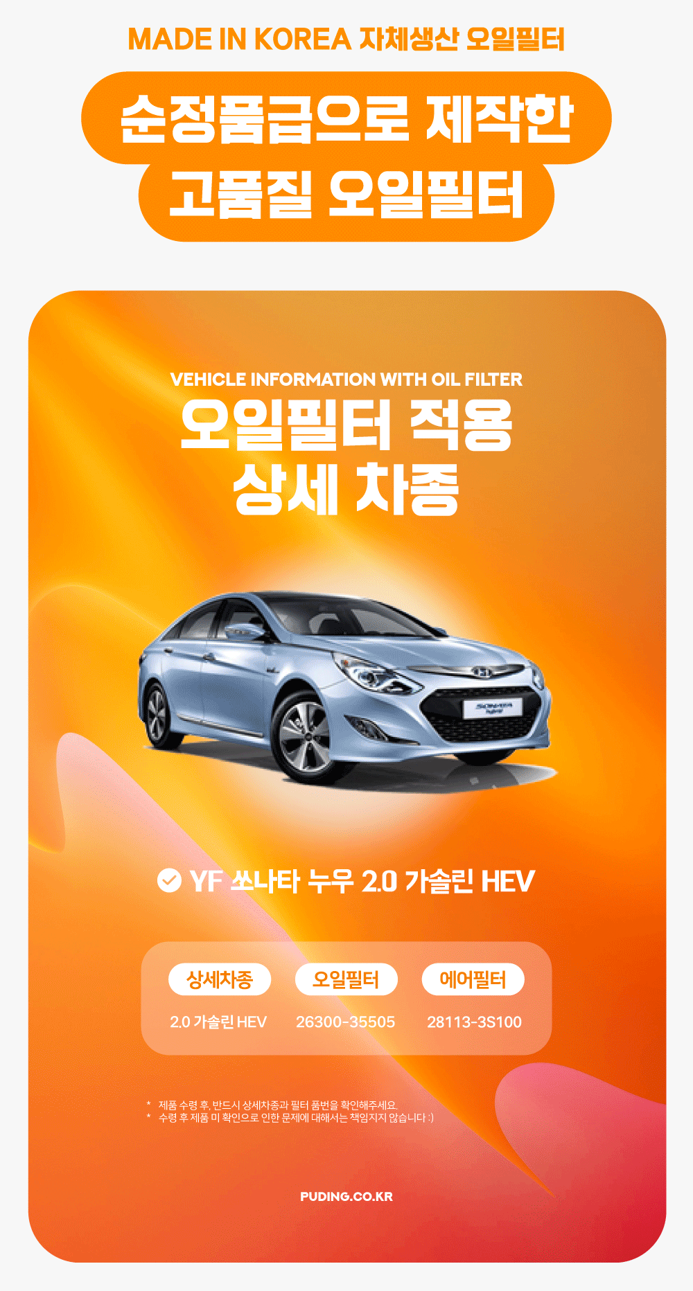 푸딩에서 고품질 오일필터를 저렴하게 교체해보세요! (MADE IN KOREA 자체생산)