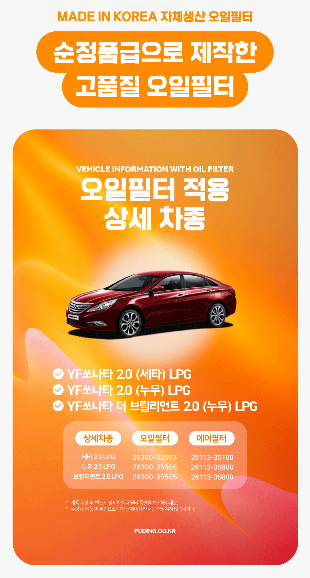 푸딩에서 고품질 오일필터를 저렴하게 교체해보세요! (MADE IN KOREA 자체생산)