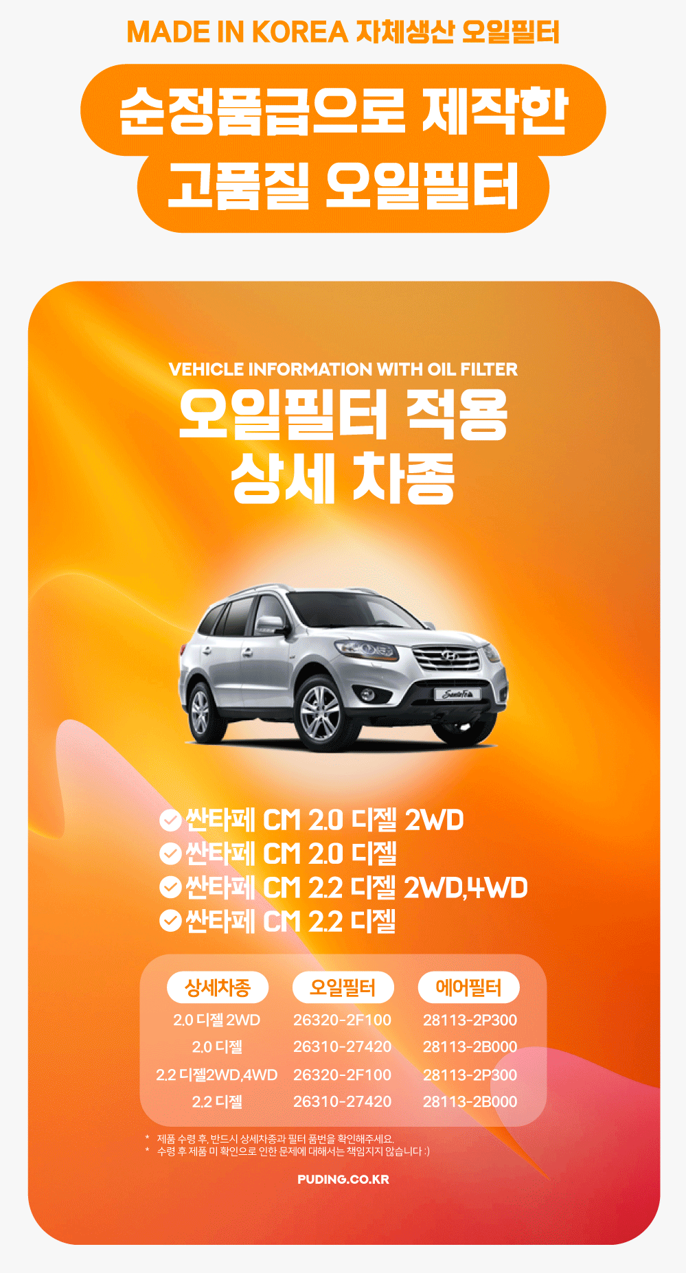 엔진형식(연형)선택하세요.싼타페 CM(디젤) 2.2 e-VGT 2WD•4WD (2009.07-2012.05)