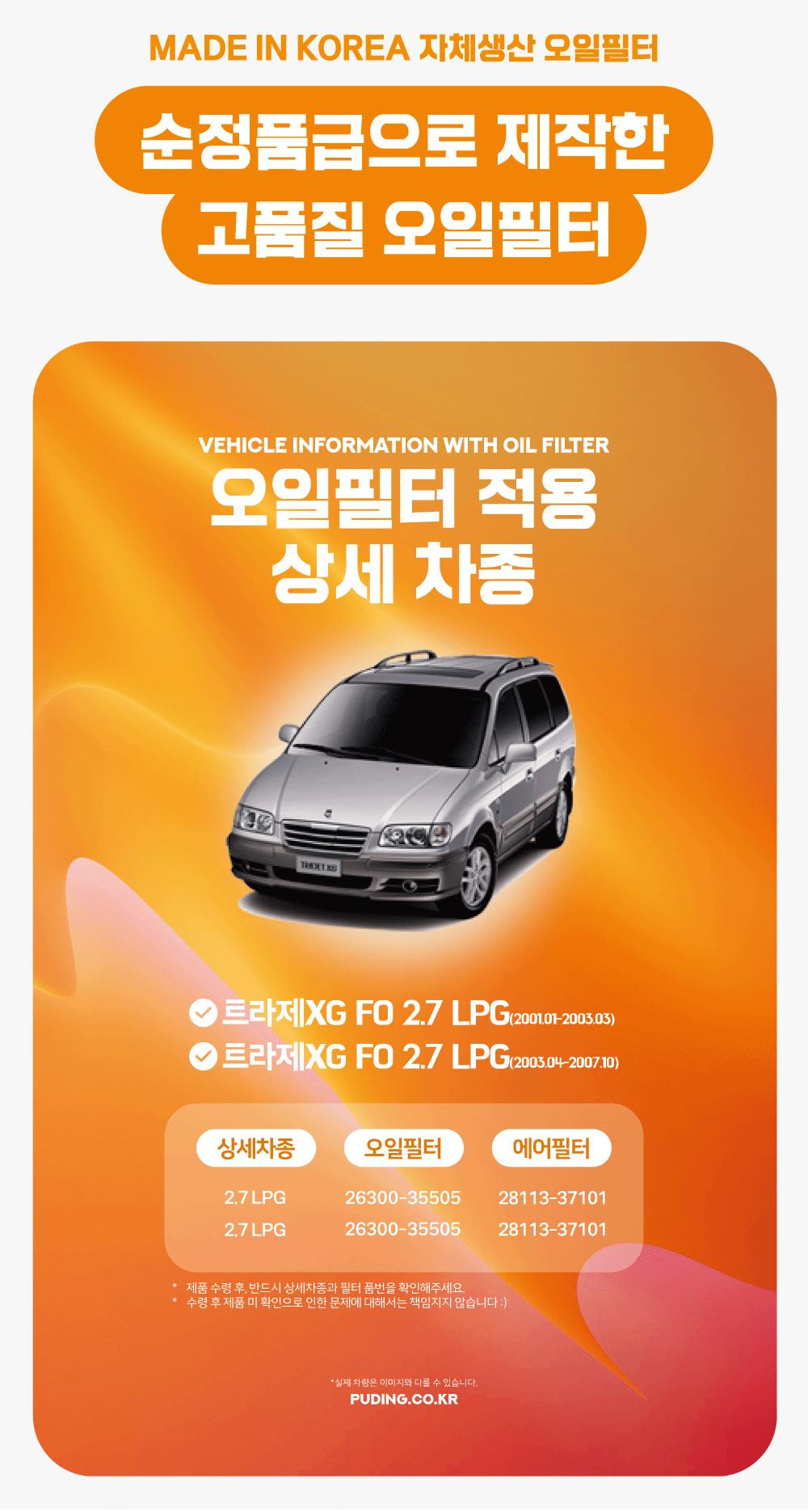 푸딩에서 고품질 오일필터를 저렴하게 교체해보세요! (MADE IN KOREA 자체생산)