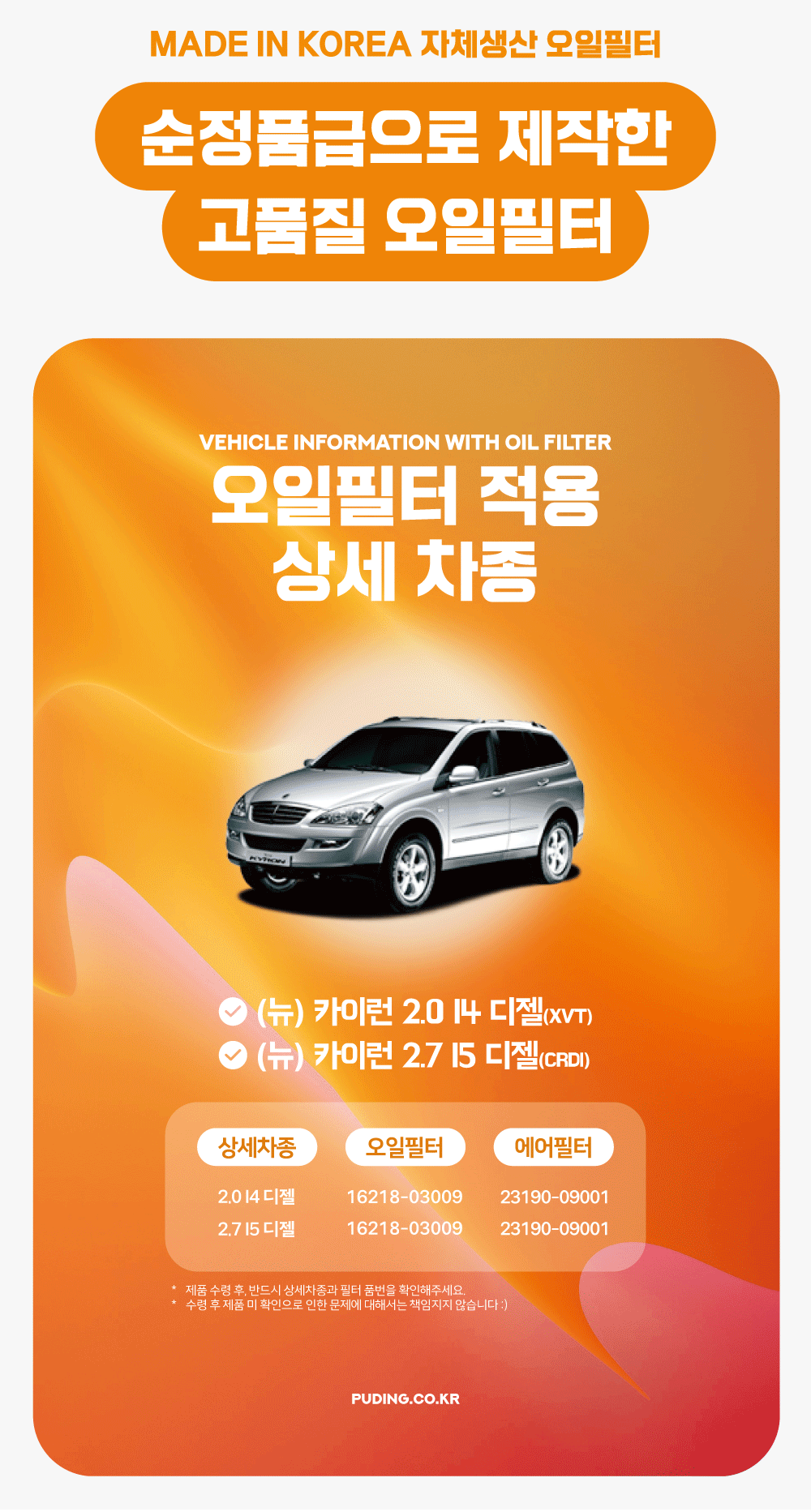 푸딩에서 고품질 오일필터를 저렴하게 교체해보세요! (MADE IN KOREA 자체생산)