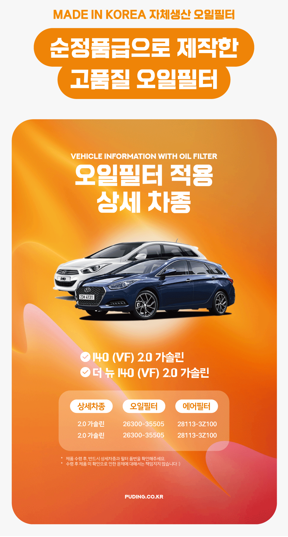 푸딩에서 고품질 오일필터를 저렴하게 교체해보세요! (MADE IN KOREA 자체생산)