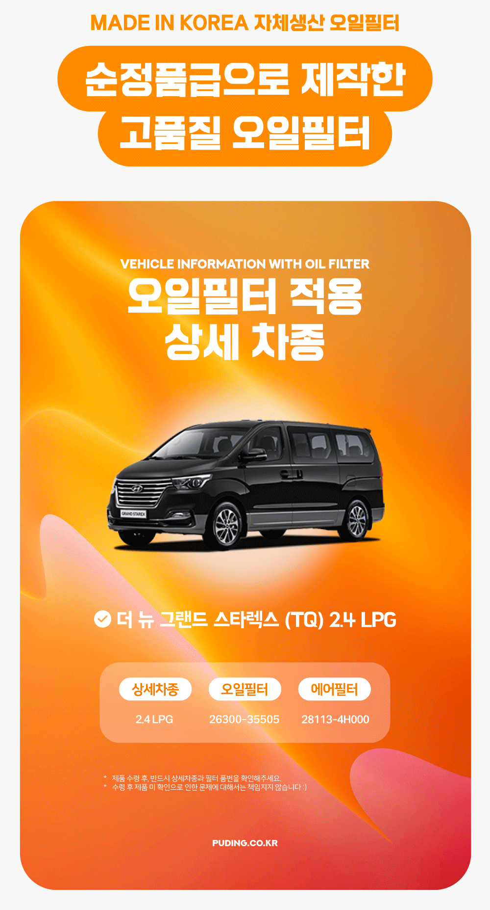 푸딩에서 고품질 오일필터를 저렴하게 교체해보세요! (MADE IN KOREA 자체생산)
