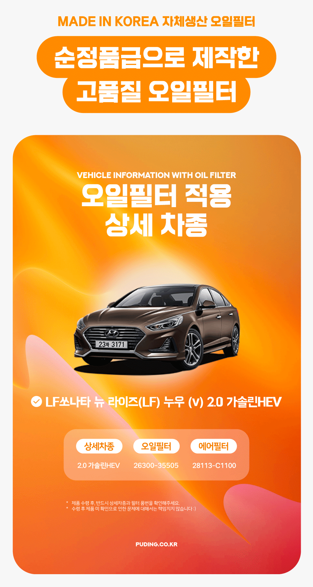 푸딩에서 고품질 오일필터를 저렴하게 교체해보세요! (MADE IN KOREA 자체생산)