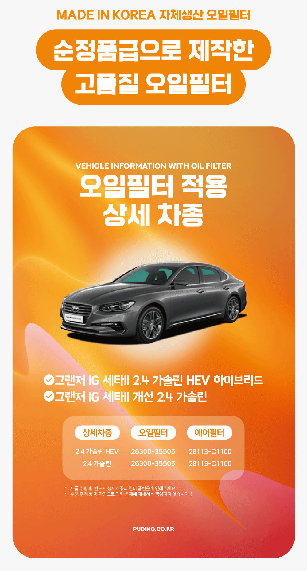 푸딩에서 고품질 오일필터를 저렴하게 교체해보세요! (MADE IN KOREA 자체생산)