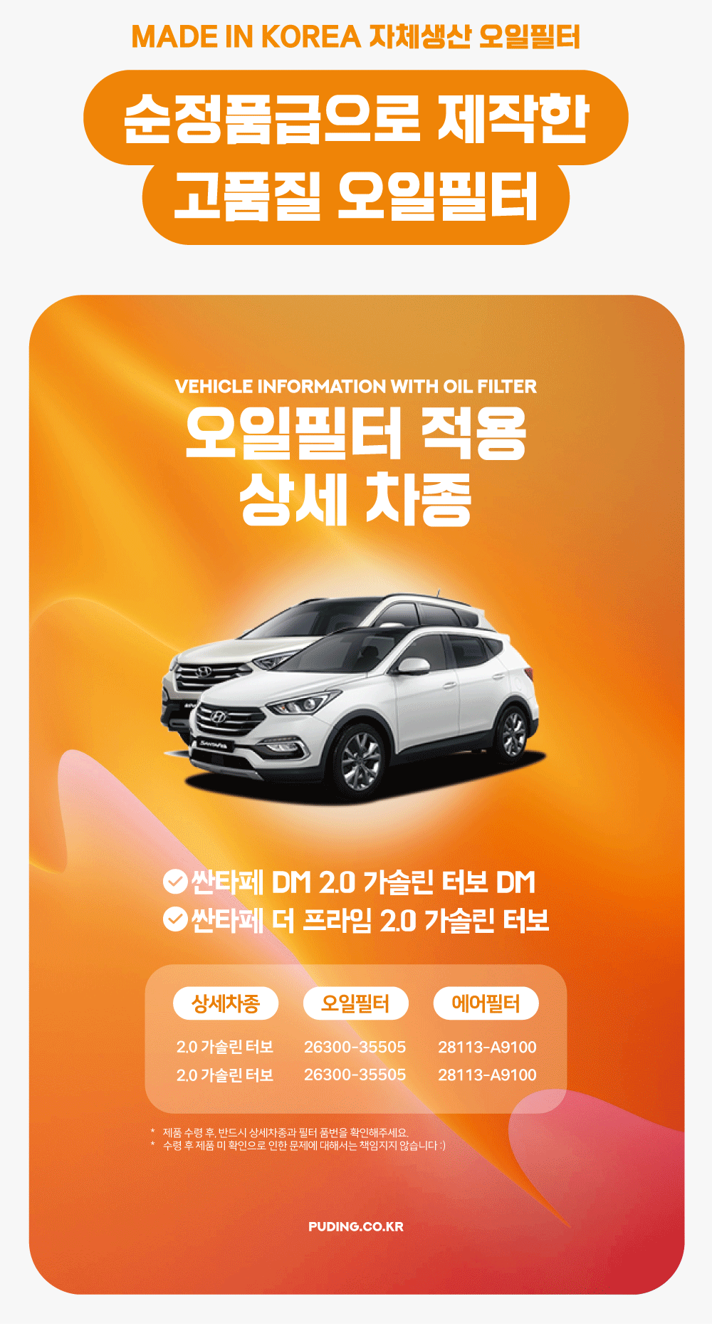 푸딩에서 고품질 오일필터를 저렴하게 교체해보세요! (MADE IN KOREA 자체생산)