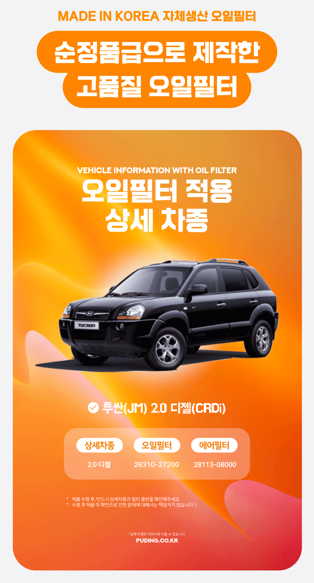 푸딩에서 고품질 오일필터를 저렴하게 교체해보세요! (MADE IN KOREA 자체생산)