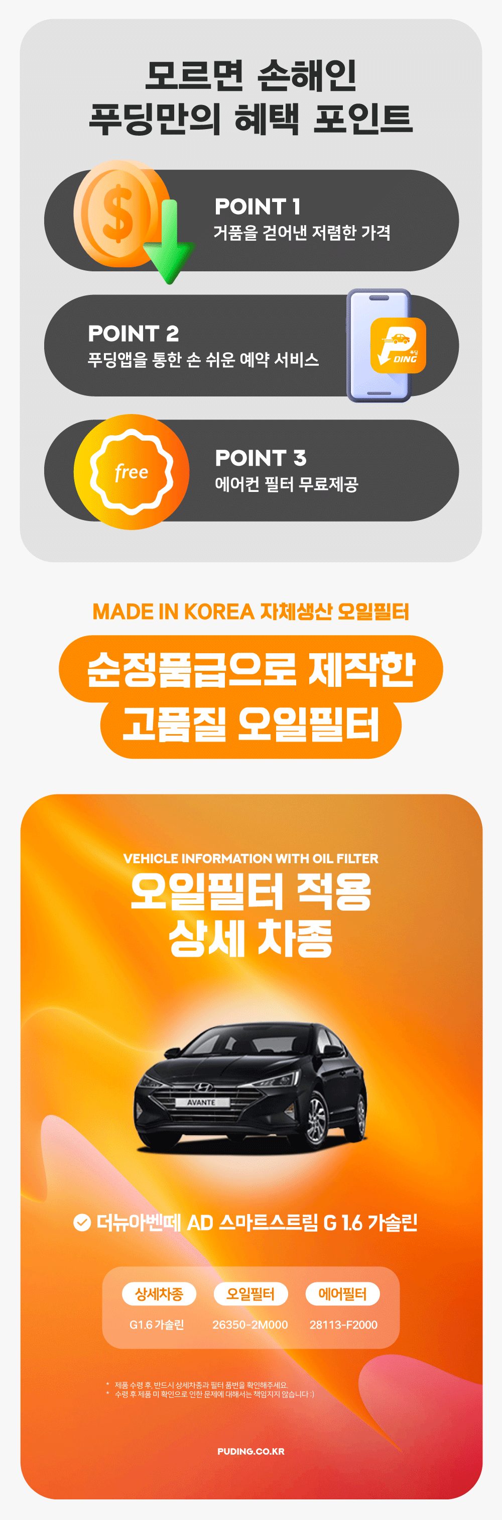 푸딩에서 고품질 오일필터를 저렴하게 교체해보세요! (MADE IN KOREA 자체생산)
