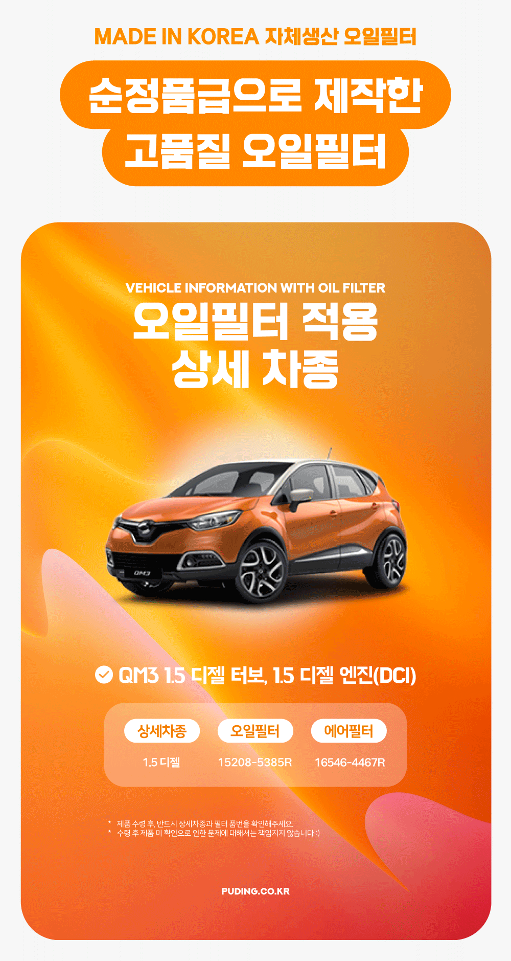 푸딩에서 고품질 오일필터를 저렴하게 교체해보세요! (MADE IN KOREA 자체생산)