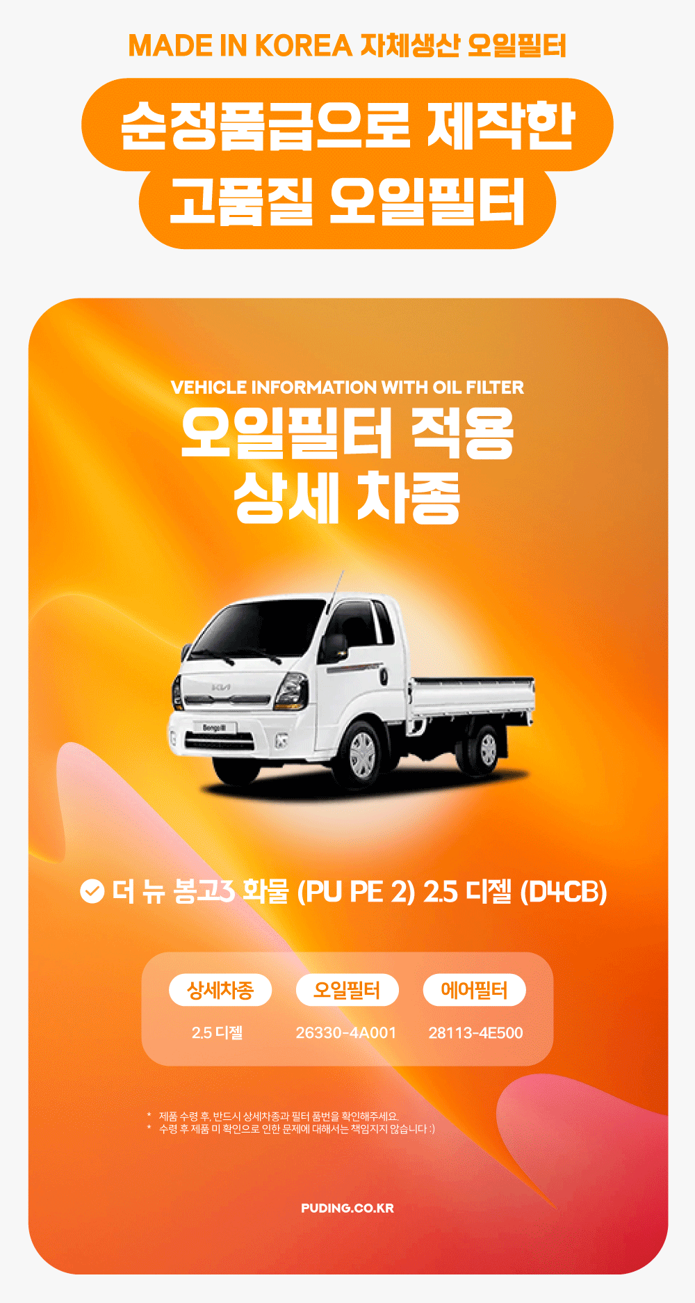 푸딩에서 고품질 오일필터를 저렴하게 교체해보세요! (MADE IN KOREA 자체생산)