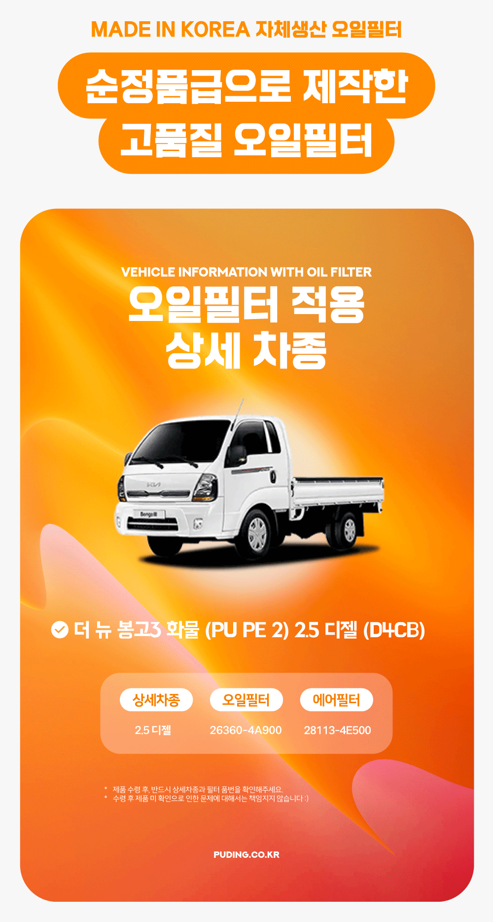 푸딩에서 고품질 오일필터를 저렴하게 교체해보세요! (MADE IN KOREA 자체생산)