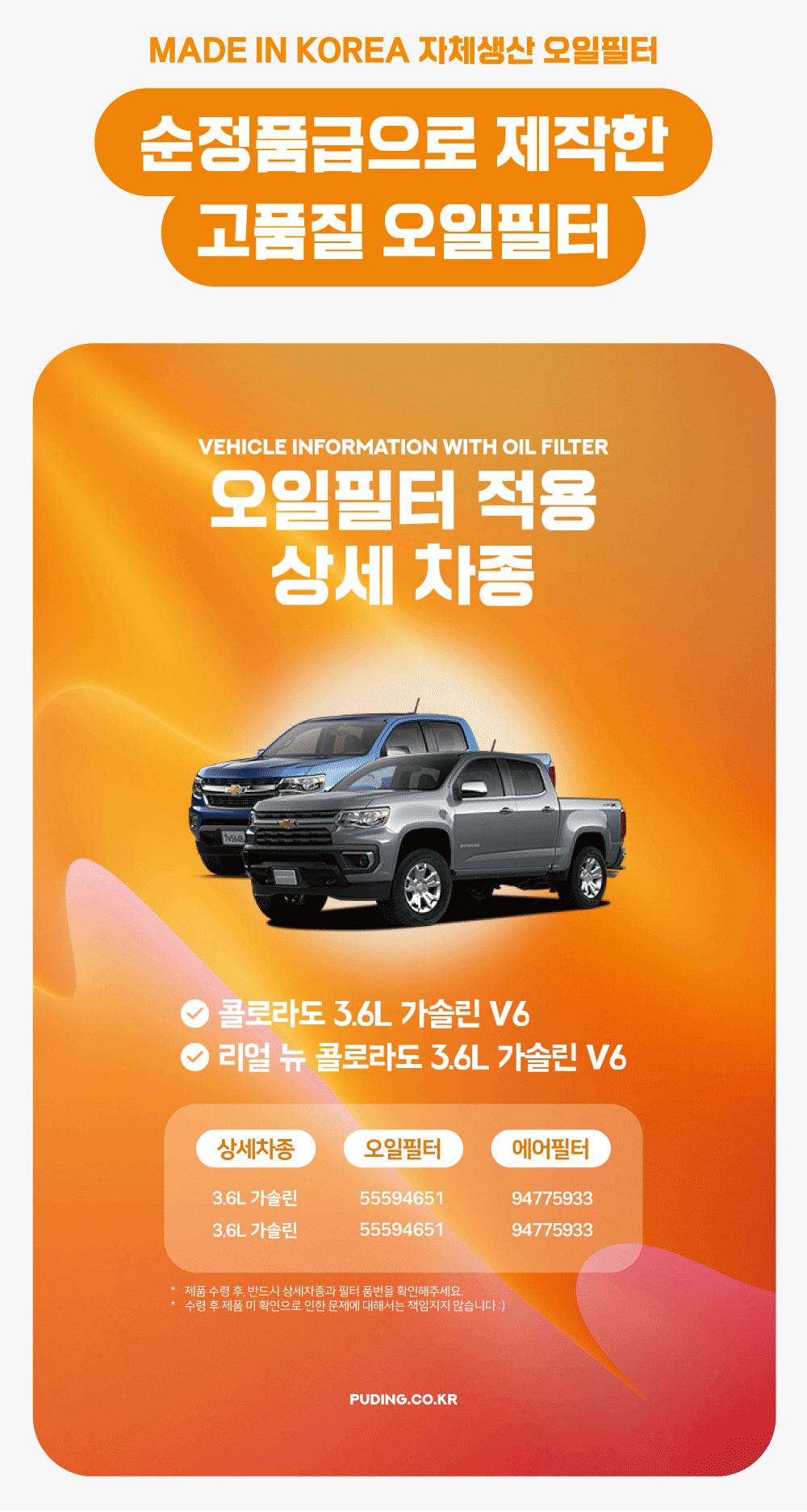 푸딩에서 고품질 오일필터를 저렴하게 교체해보세요! (MADE IN KOREA 자체생산)